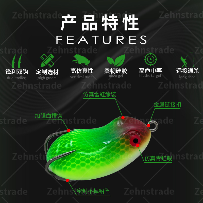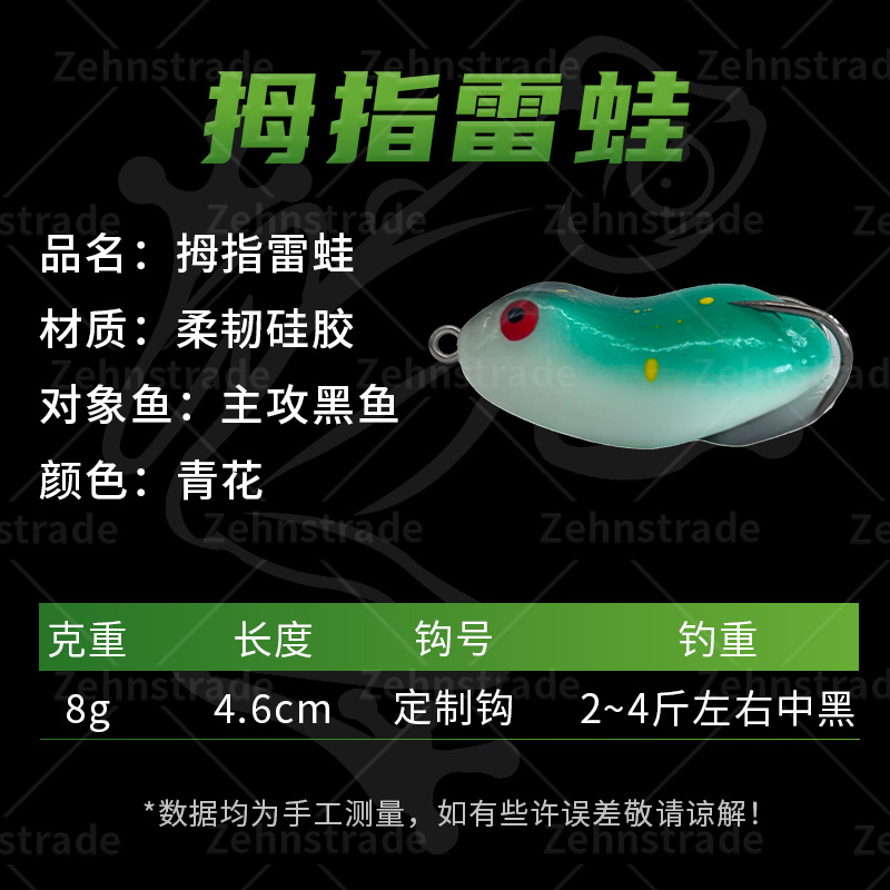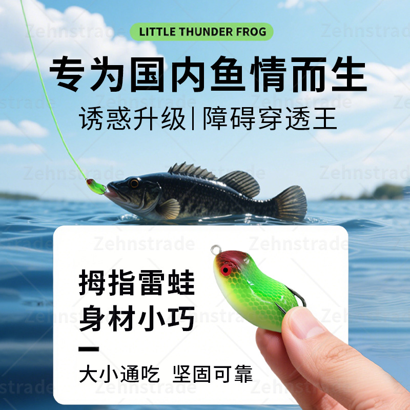 Luya fake bait mini bait thunder frog small black fish special rabbit frog modified sequins trumpet black double hooks long throw thumb frog