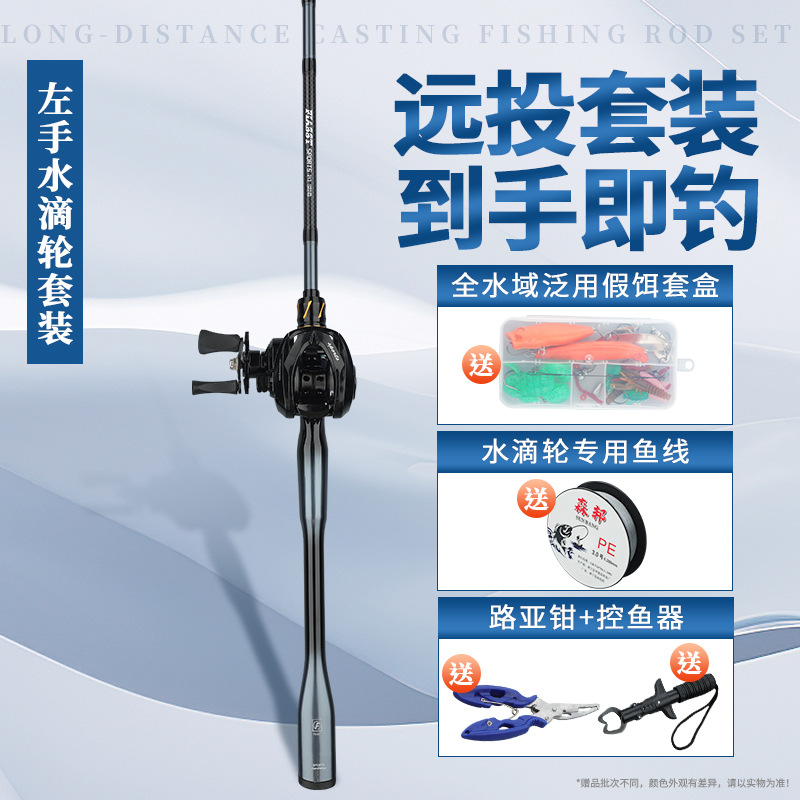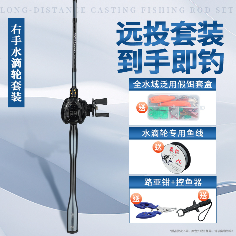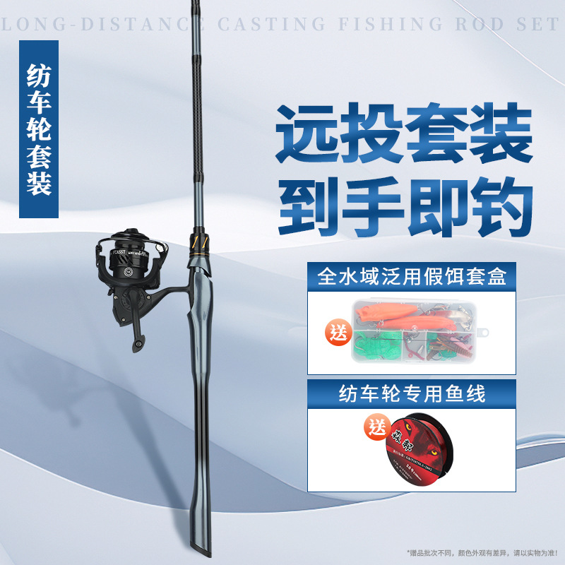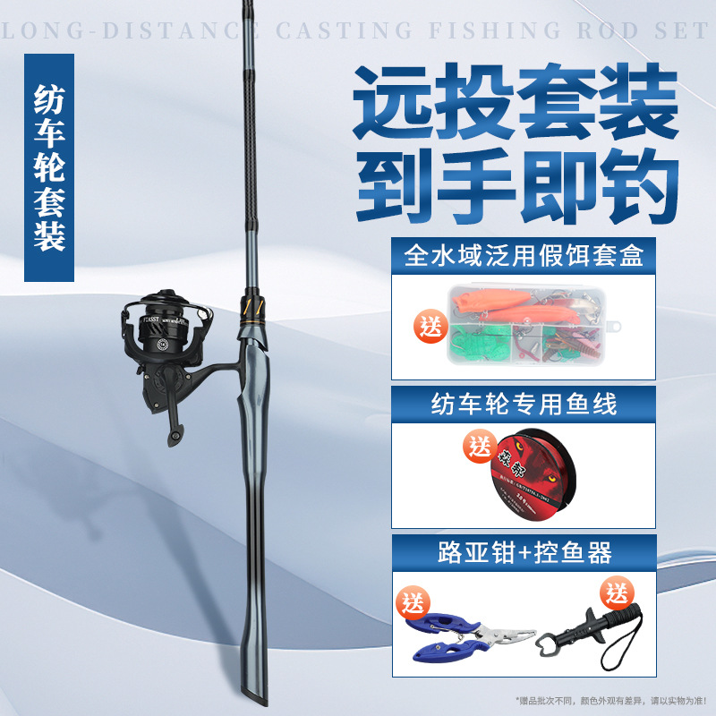 Luya pole set Fishing rod Carbon long-distance casting sea pole throwing fishing rod water drop wheel spinning wheel straight handle Luya pole