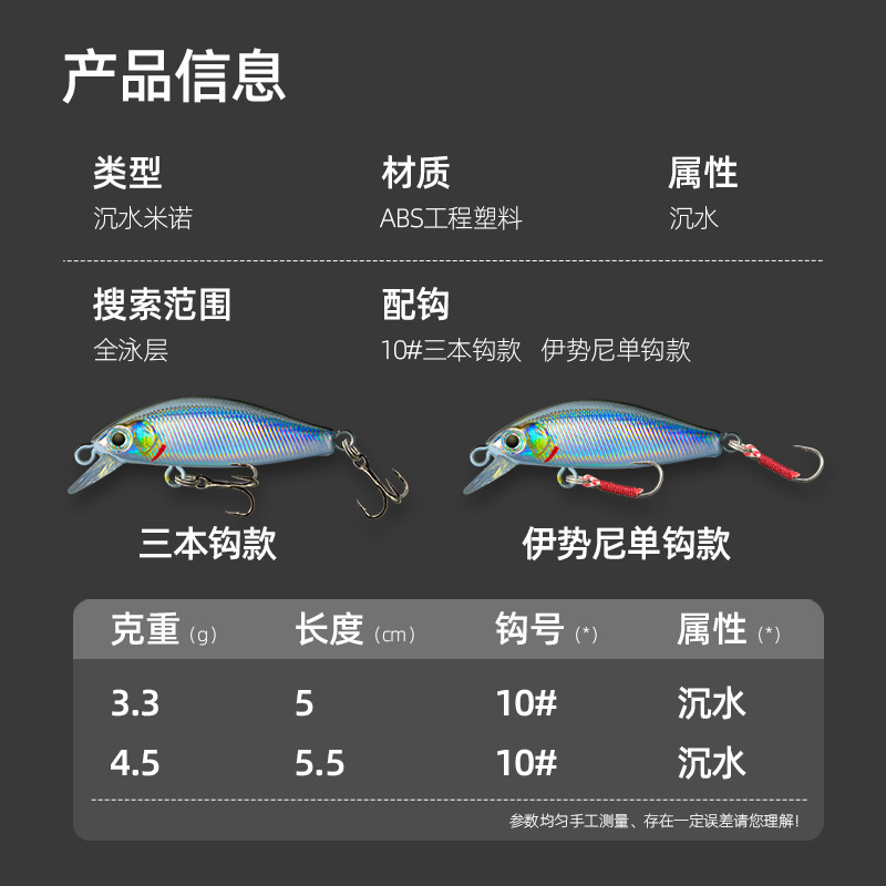 Micro-matter submerged minino 3.3g 4.5g Luya bait floating water slow-sinking, long-distance cast micro-matter bait Luya bait
