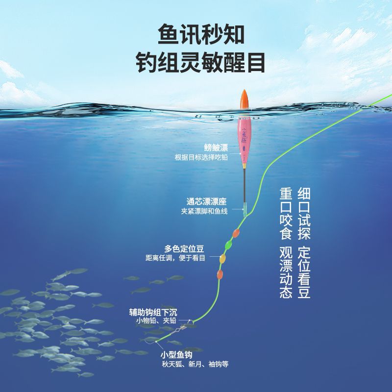 Micro-objects and small objects float in Sichuan and Ze, highly sensitive shallow water, luminous float day and night, fish float in stream fishing for small grouper and horse mouth