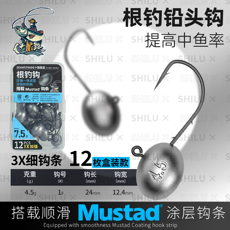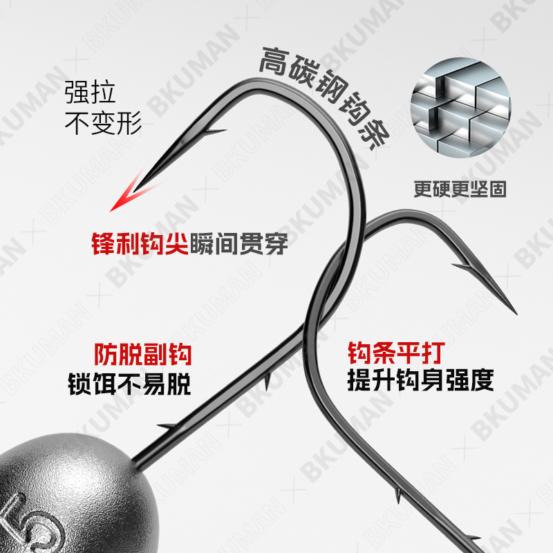 Musda Ping hooking strip, sub-micro object root, fishing hook, lead head hook, 3X strengthened, 12 perch, mandarin fish, tilted mouth special gram