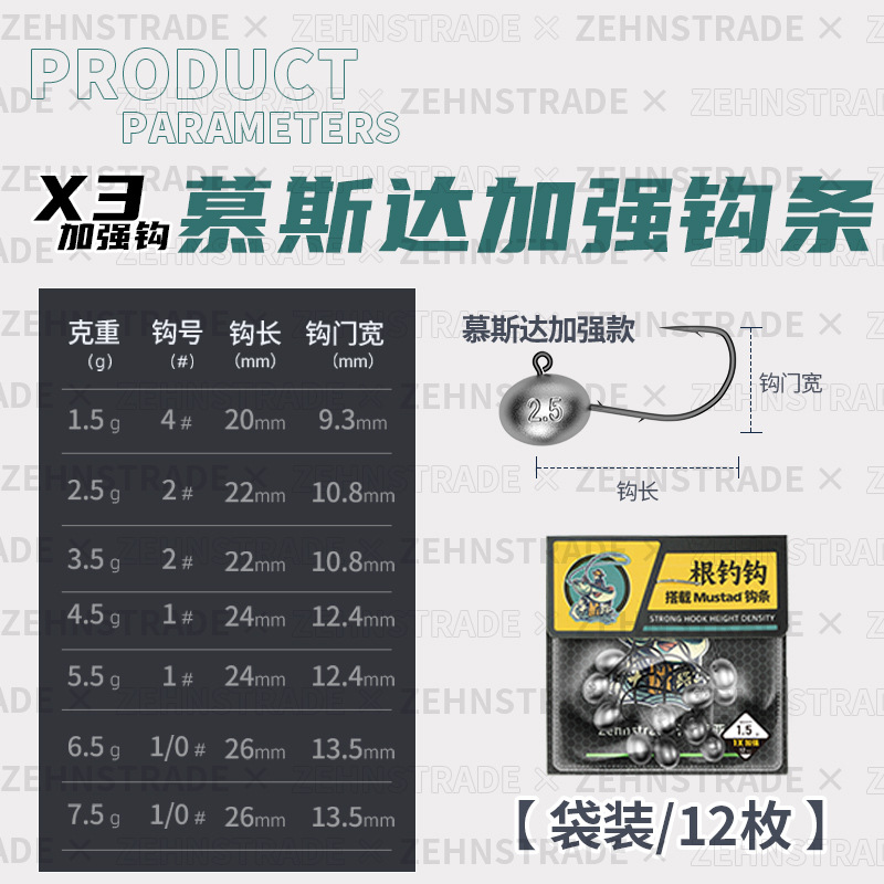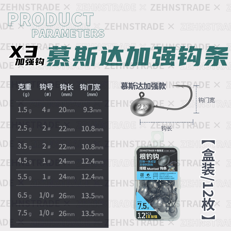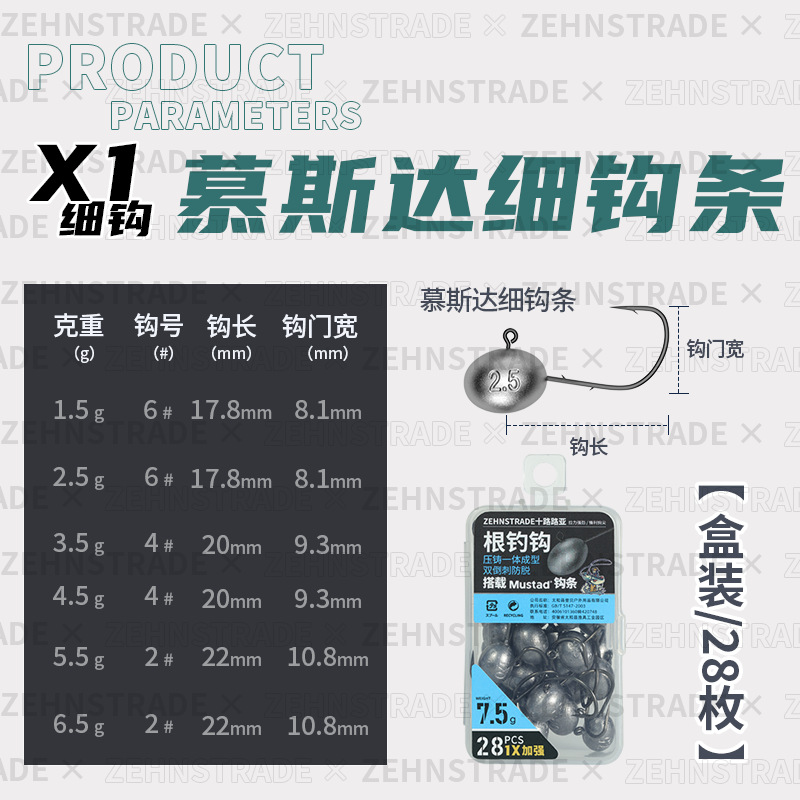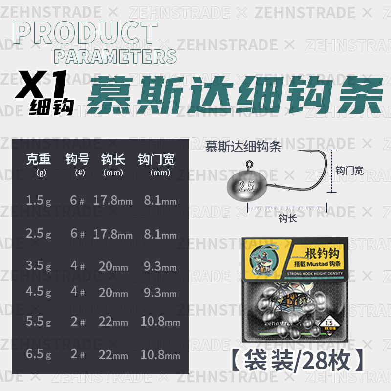 Musda hook, sub-micro root, fishing hook, lead head hook, 12 pieces, 28 pieces, reinforced perch, mandarin fish, special tilted nose hook
