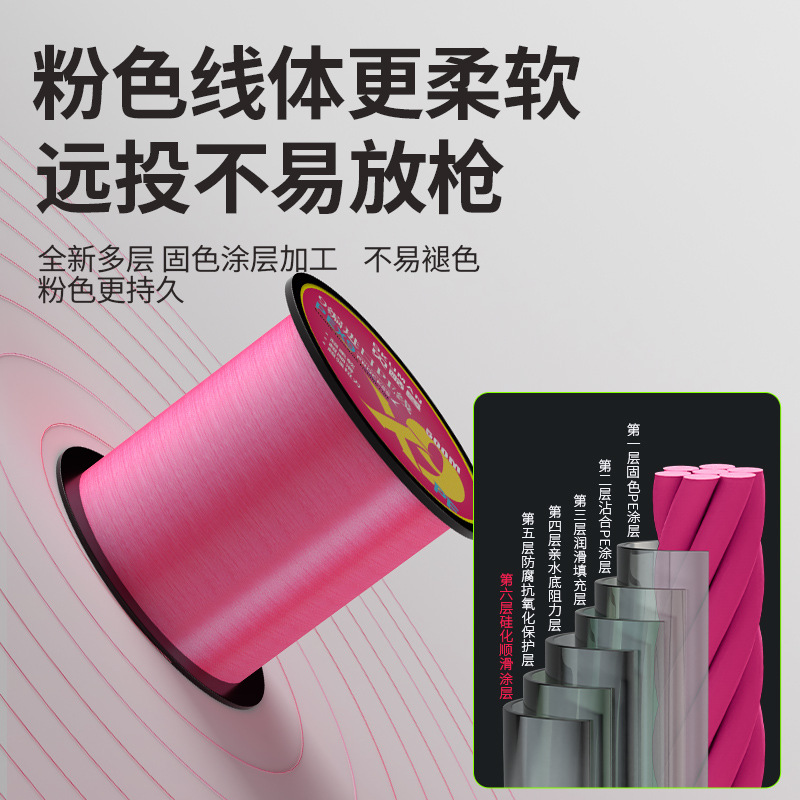 新款500米9编粉色高端pe线强拉力超顺滑鱼线雷强打黑强拉力织网线