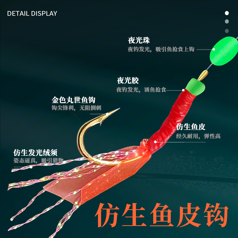 New anti-entanglement bionic shrimp skin string hook 3 hook 5 hook white strip yellow spicy Ding fishing carp ball world throwing pole new fishing set