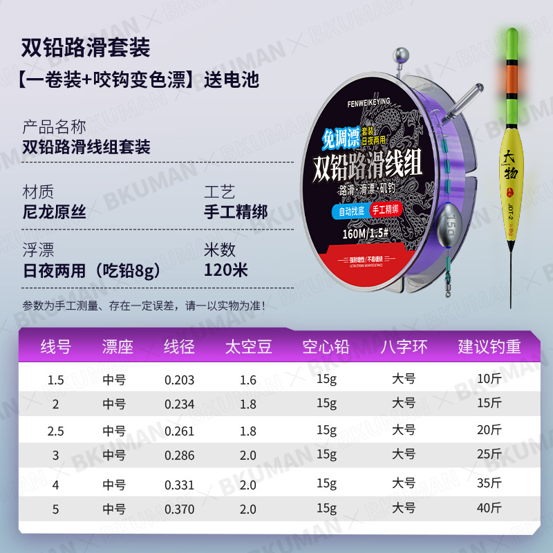 New style no-adjustment-free drift road slip line group running lead finished product line group automatic bottom-finding main line, sub-line, fishing line, fishing gear wholesale