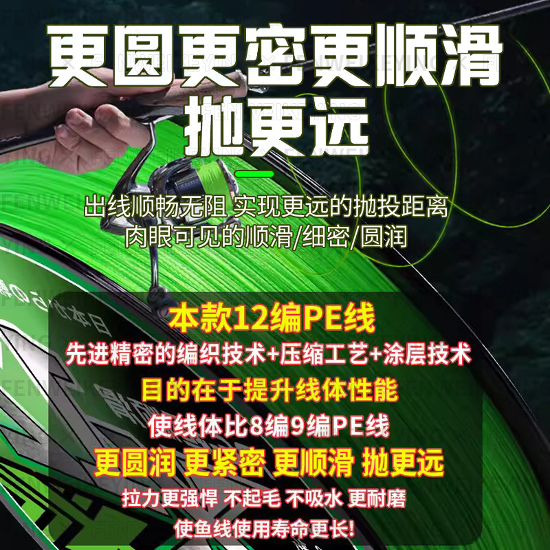 Newly upgraded authentic 12-piece pe line special for sub-long shooting, strong pulling force, super smooth, anti-biting, strong wear-resistant, black fishing