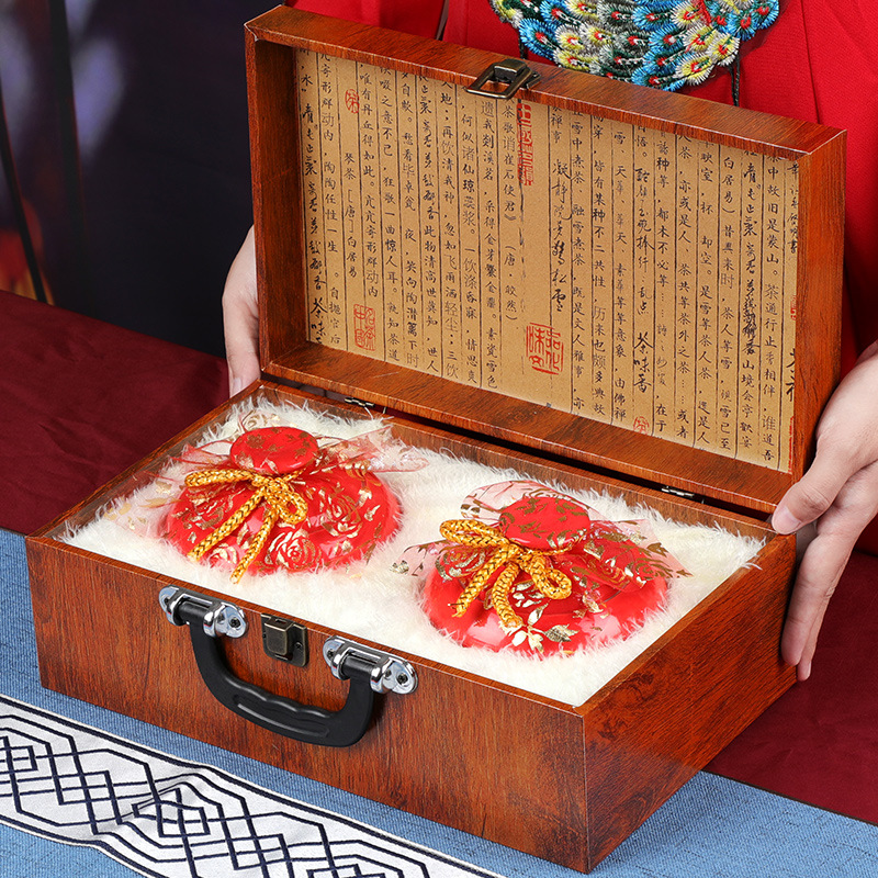 Qiangyun Pu 'er Tea, glutinous rice, fragrant silver, portable wood grain, ceramics on mountains and rivers, 2 cans, gift box, 500g