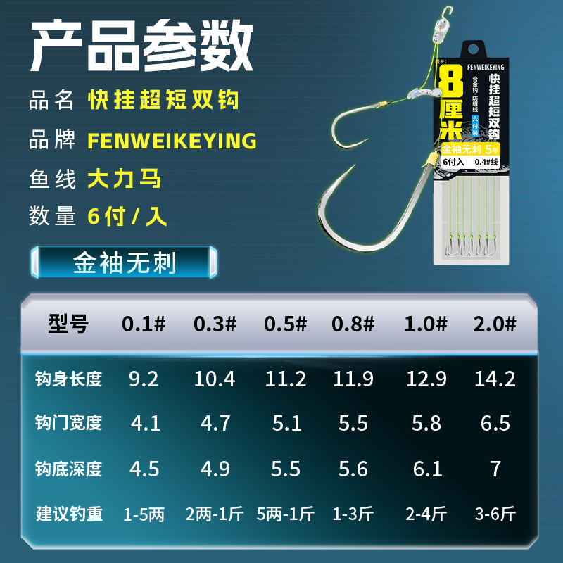 Quick hanging Dali horse short sub-line, finished product, double hook, mud carp, specializing in fish hooks, highly sensitive fishing gear supplies, wholesale, fishing lines