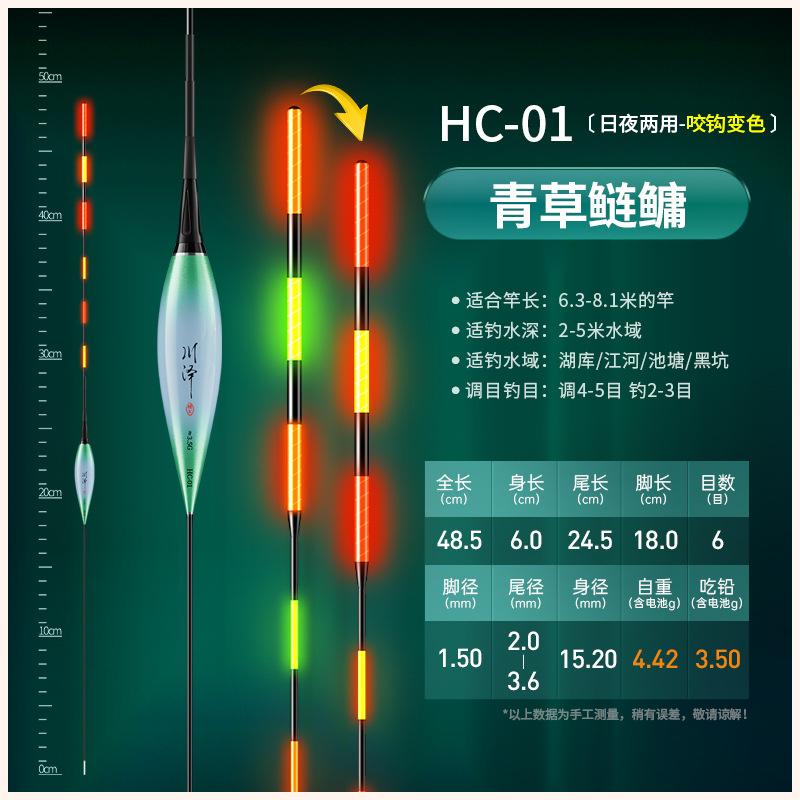 Sichuan Ze silver carp and bighead carp large object luminous float, biting hook, color change, day and night dual-purpose electronic float, highly sensitive, bold and eye-catching fish float