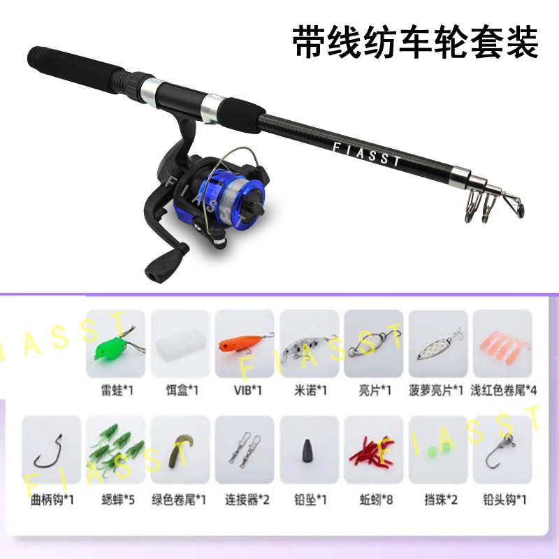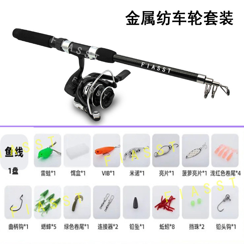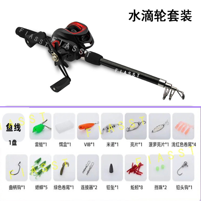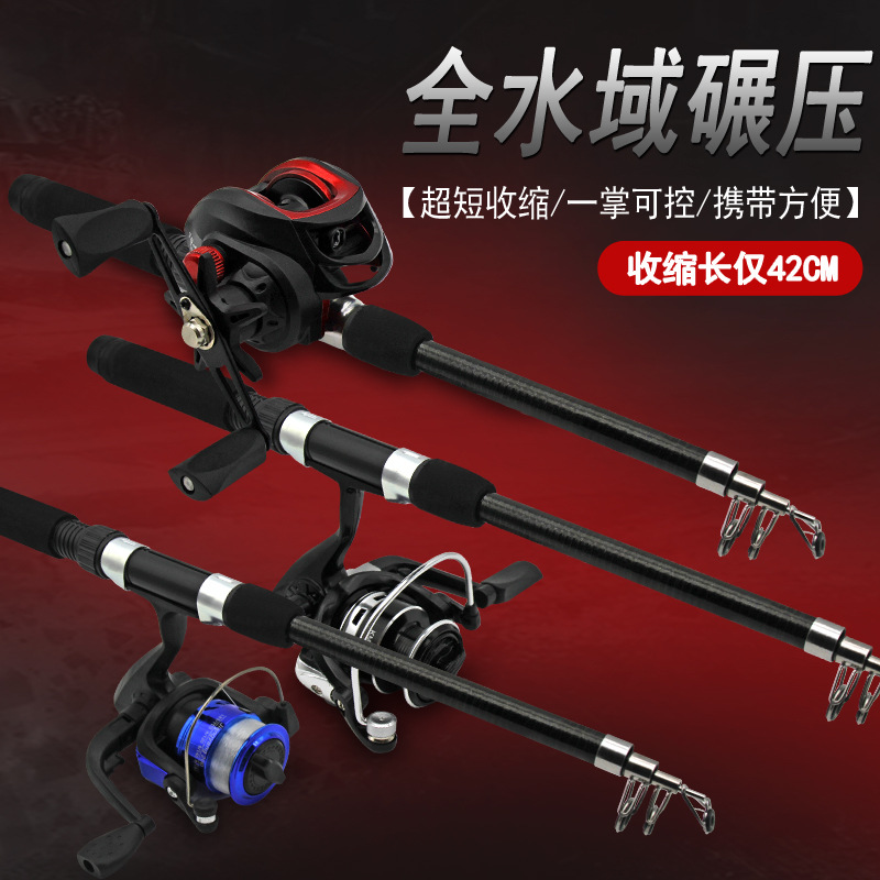 Ultra-short mini small road suit full set of retractable long-distance throwing pole throwing pole small sea pole water drop wheel spinning wheel road slide fishing rod
