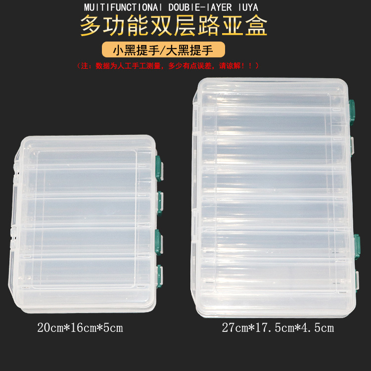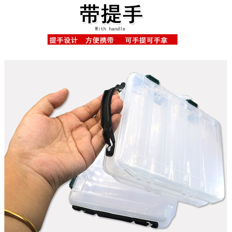 Wholesale double-sided Luya bait box with handle 10-grid 14-grid transparent wooden shrimp box fish hook storage box Fishing tool box