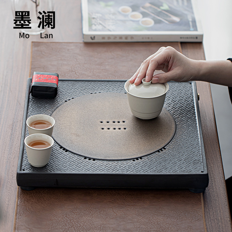 Ceramic tea tray, light luxury dry soaking table, household balcony, living room, water storage tray, tea sea, Japanese simple retro, Chinese reception
