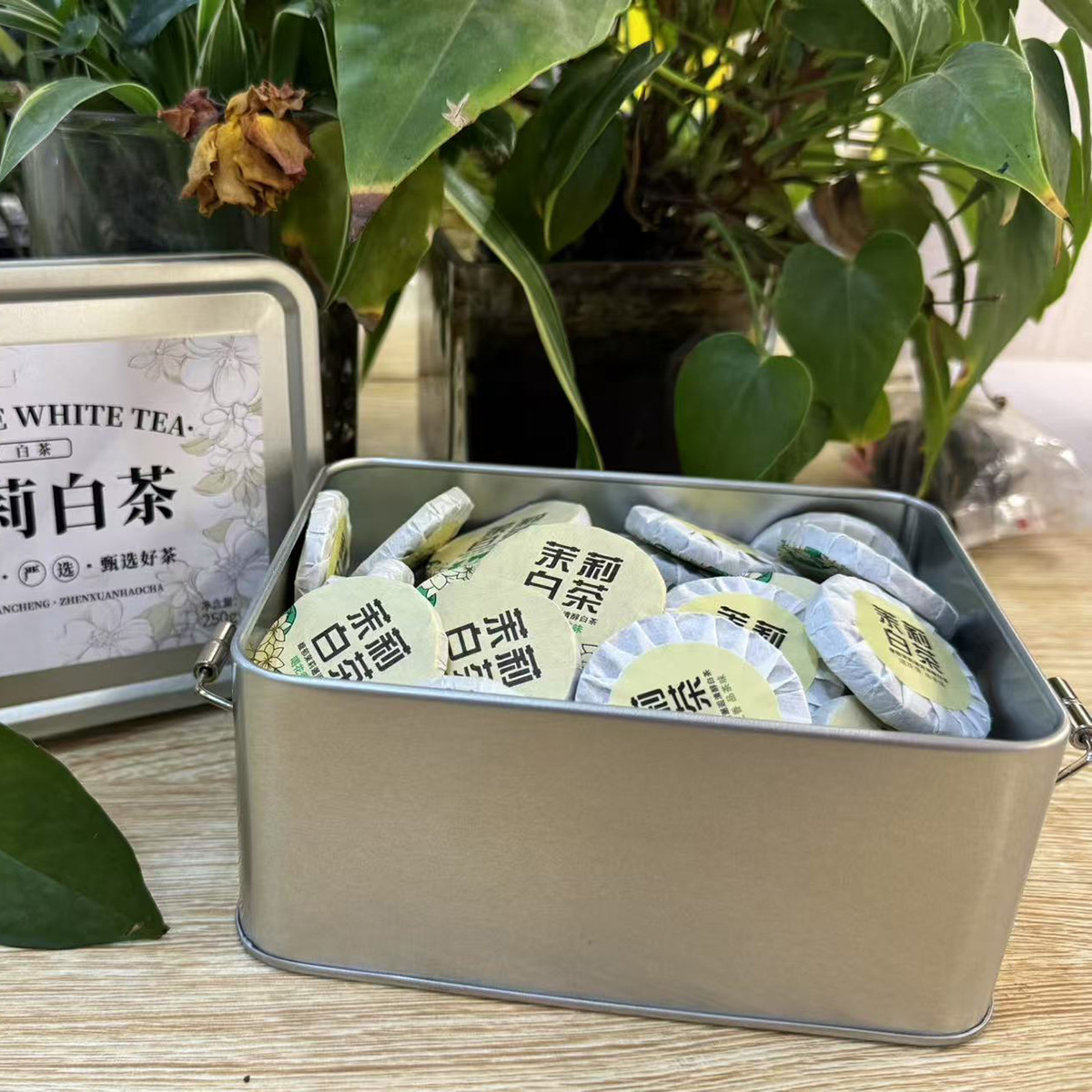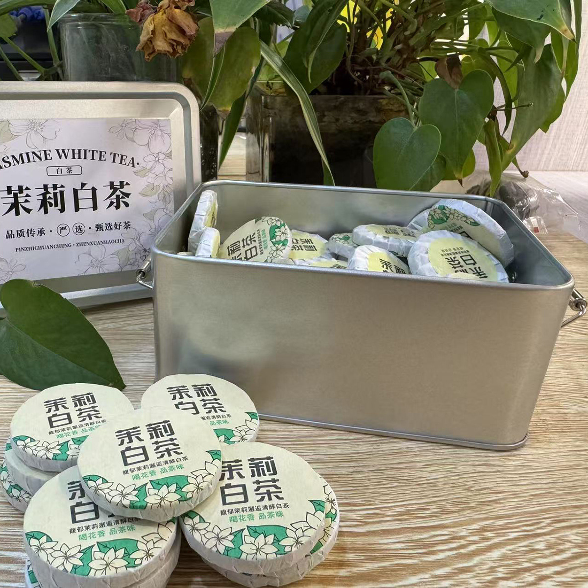 茉莉白茶茉莉花茶白牡丹紧压小方片饼干茶适合女生喝的茶罐装批发