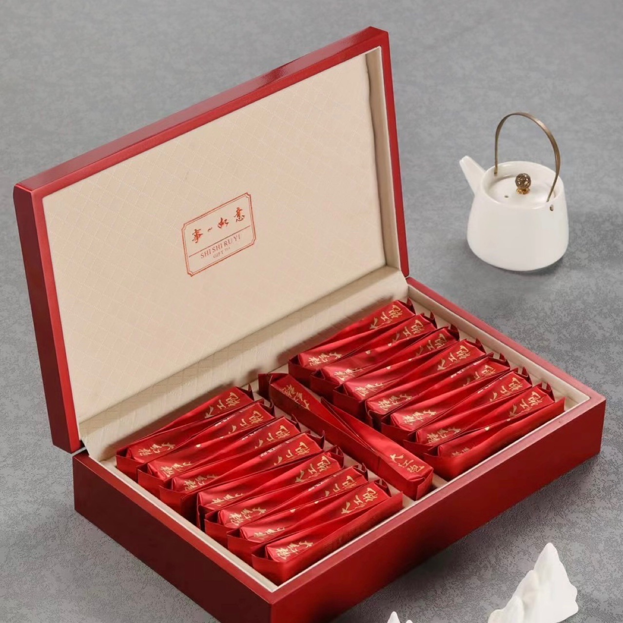 中秋茶礼武夷岩茶大红袍烤漆木质礼盒岩骨花香茶叶礼盒送礼250g装