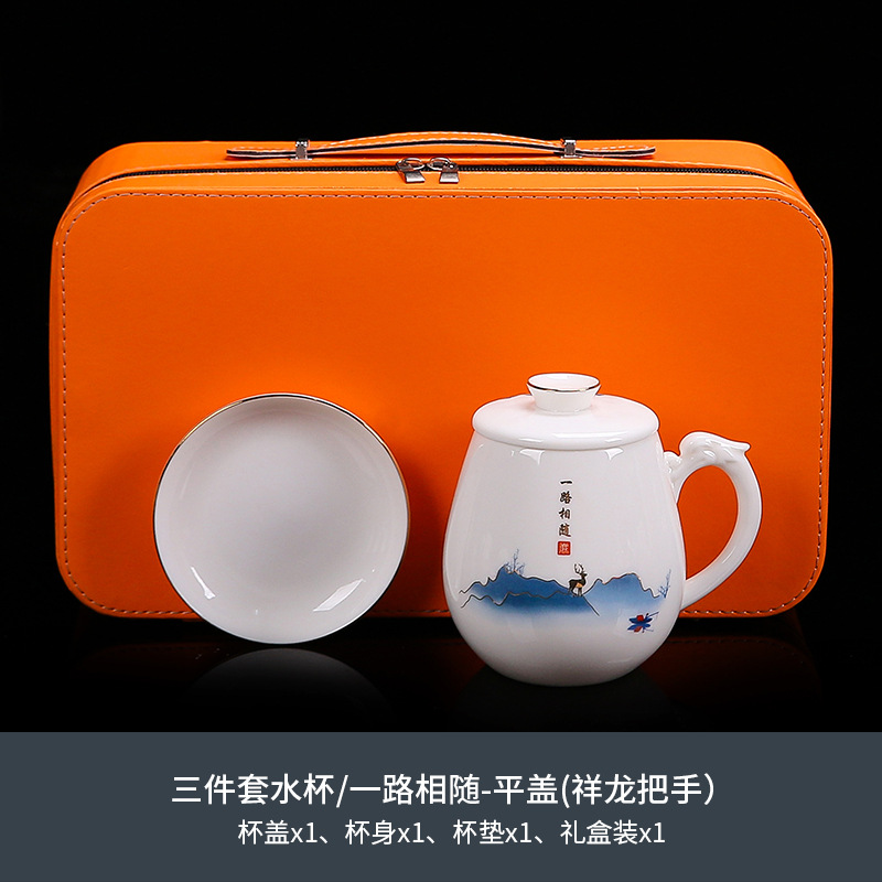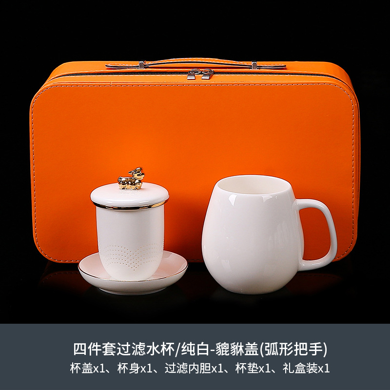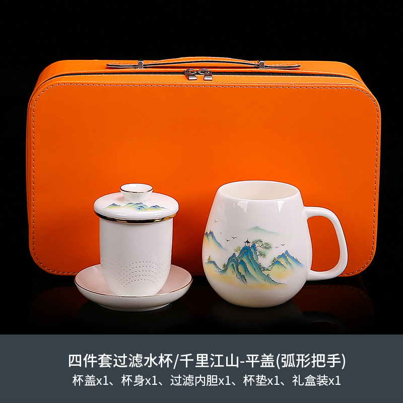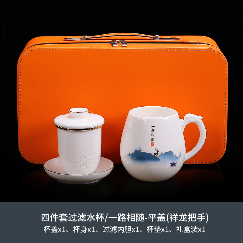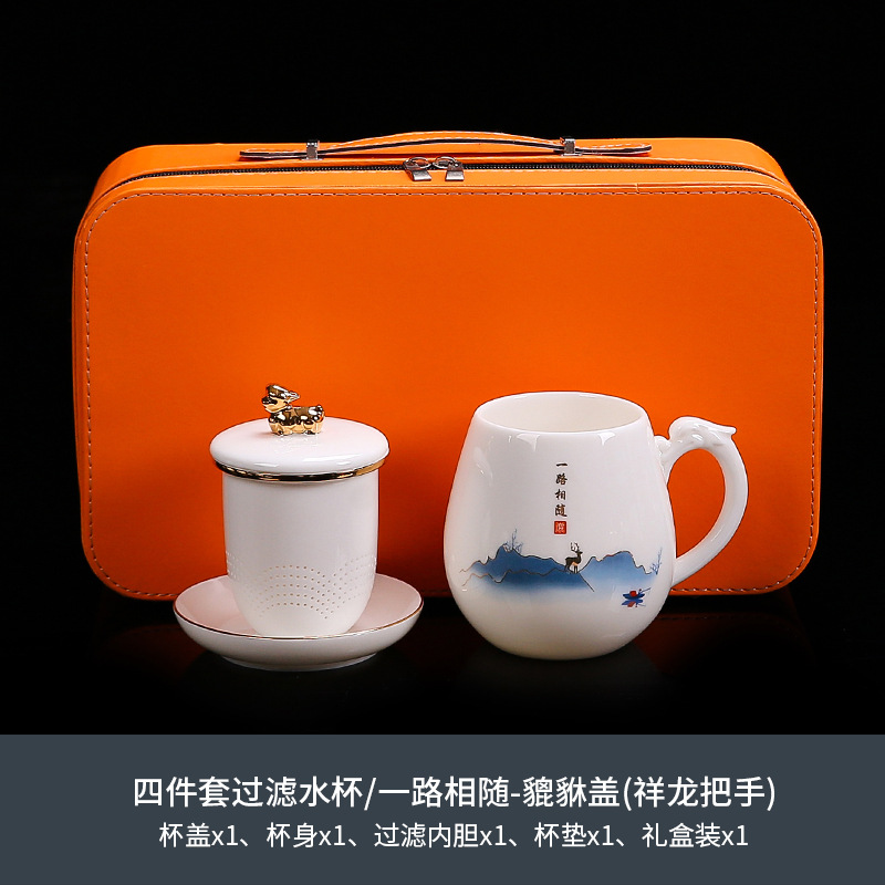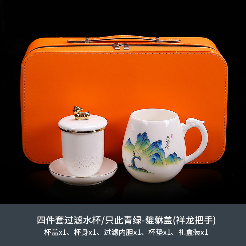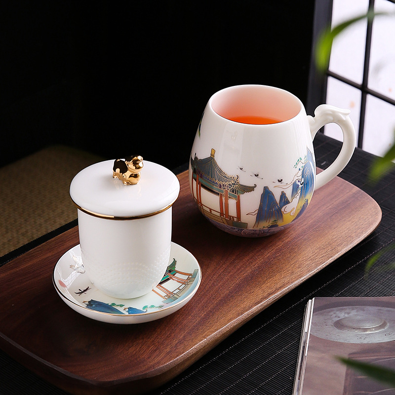 National trend sheep fat jade office cup with lid, filter gold painted ceramic mug, tea cup, tea separation, water cup, cup, bubble