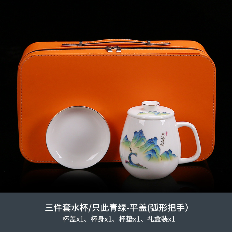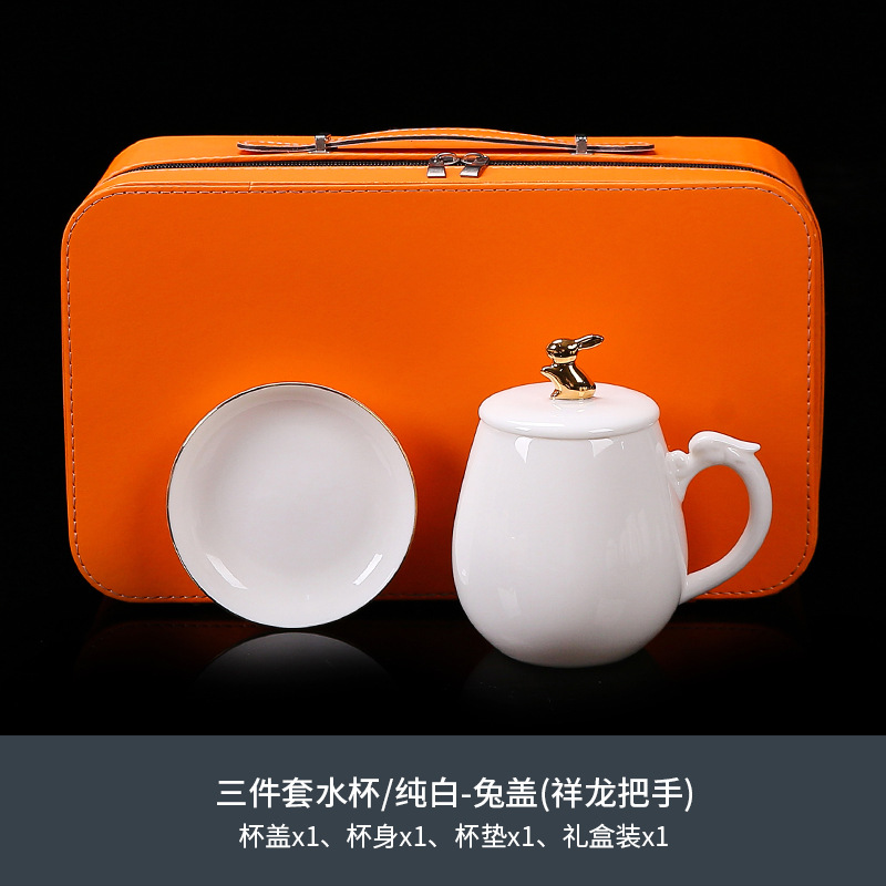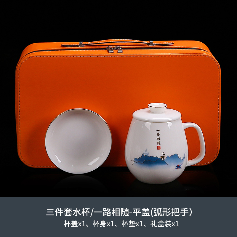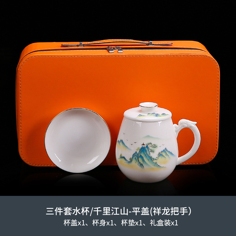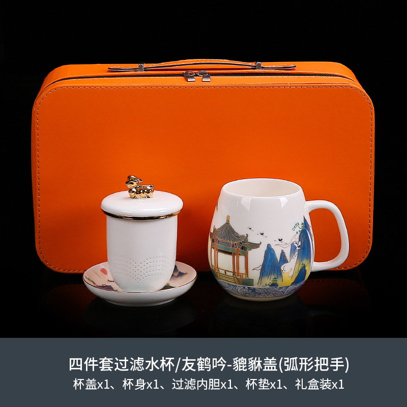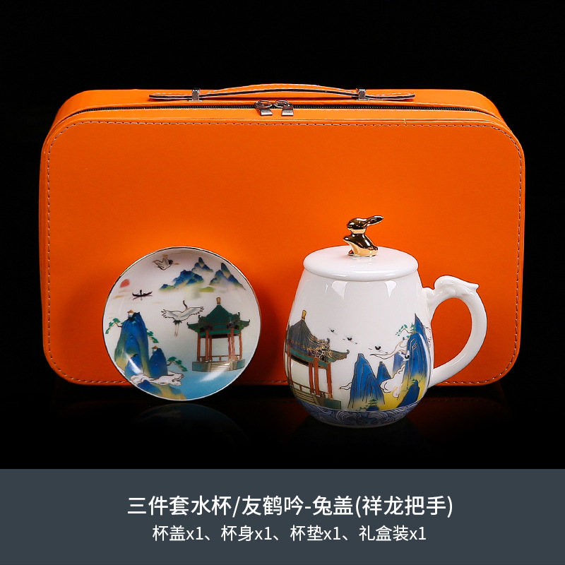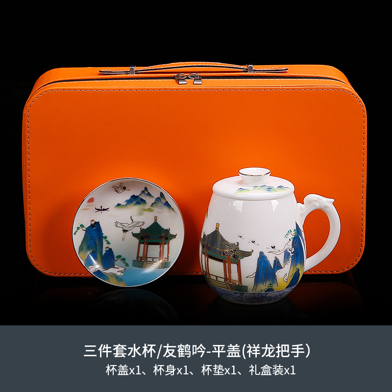 National trend sheep fat jade office cup with lid, filter gold painted ceramic mug, tea cup, tea separation, water cup, cup, bubble