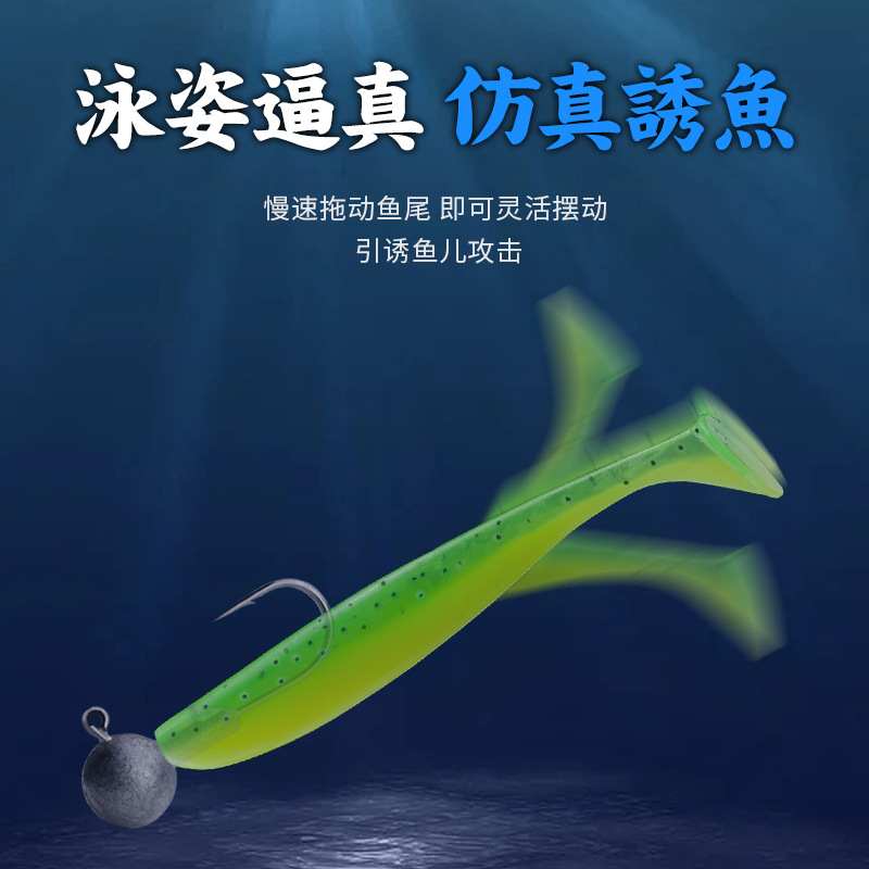 Pool blade 20 strips loaded Luya T-tail soft bait soft insect lead head hook floating water fresh water fake bait reverse fishing Luya bait wholesale