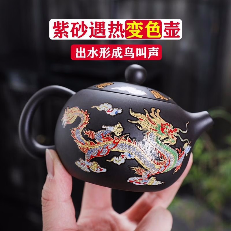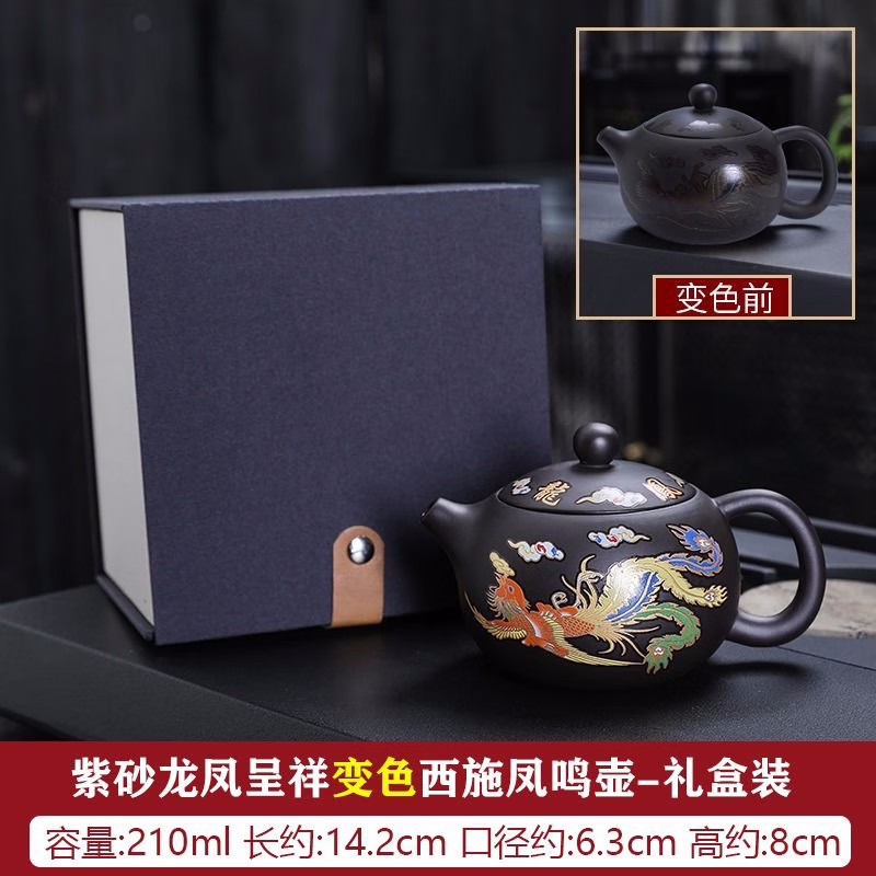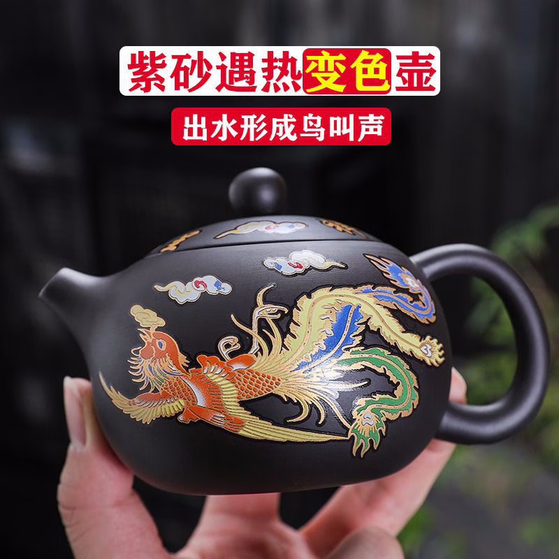 Purple sand dragon and phoenix are auspicious and change color when exposed to heat, Fengming pot, pure semi-handmade teapot, when the bird cries, teapot, Xi Shi pot