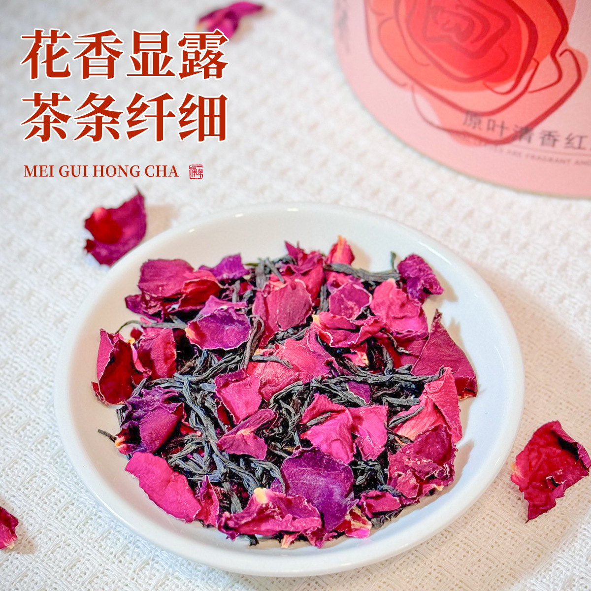 玫瑰红茶云南墨红玫瑰花茶女神重瓣玫瑰红茶组合茶精致礼盒罐装