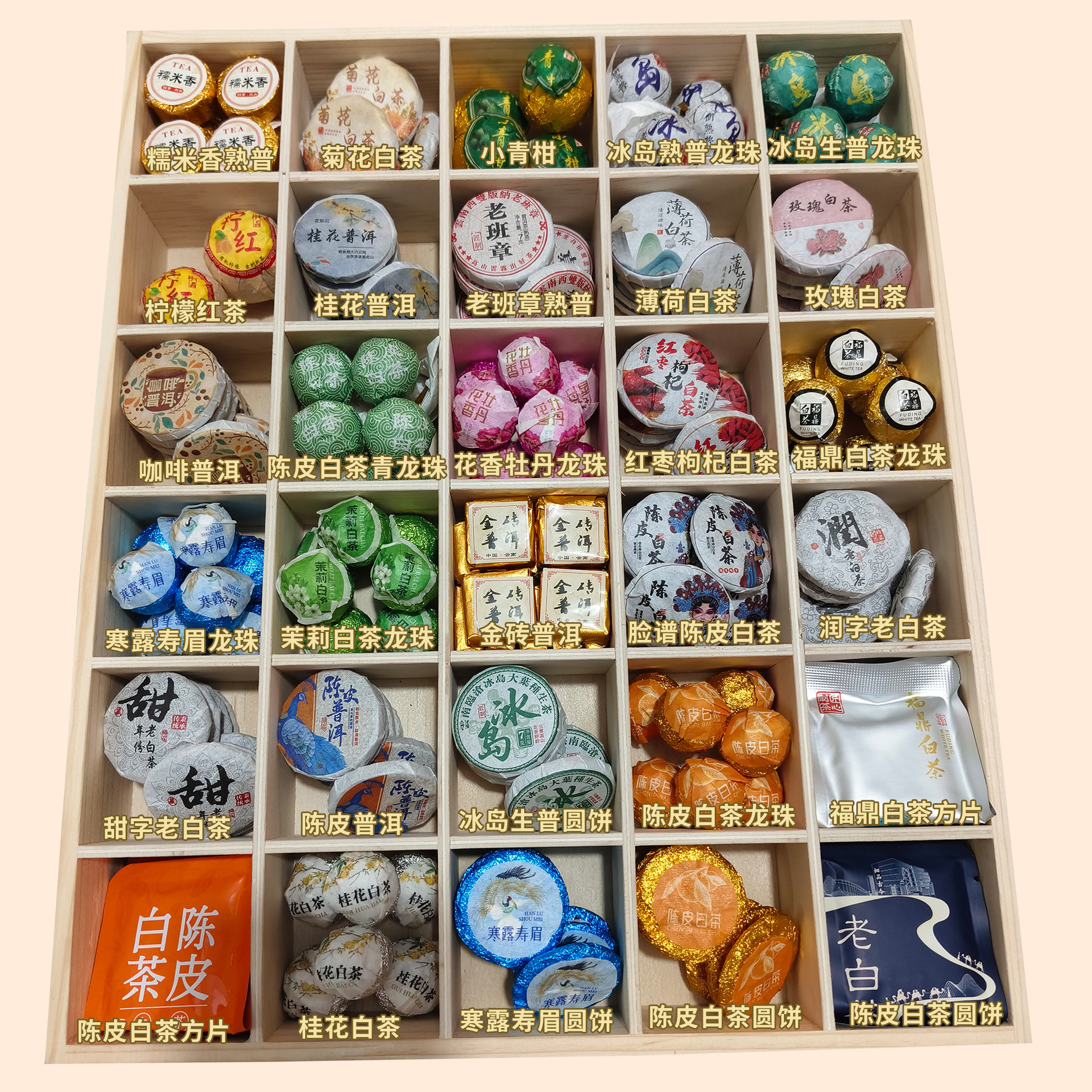 30种茶试喝样大礼包普洱茶叶礼盒装高档送人生茶熟茶福鼎陈皮白茶