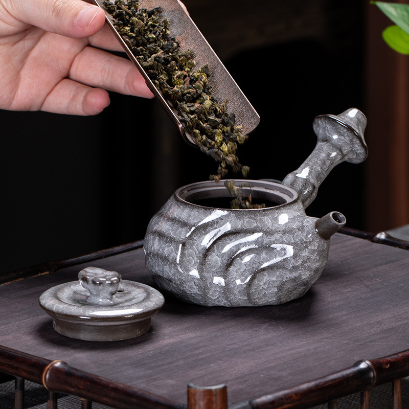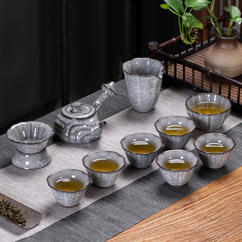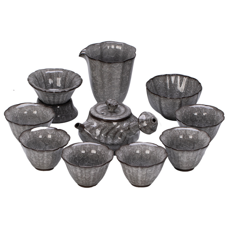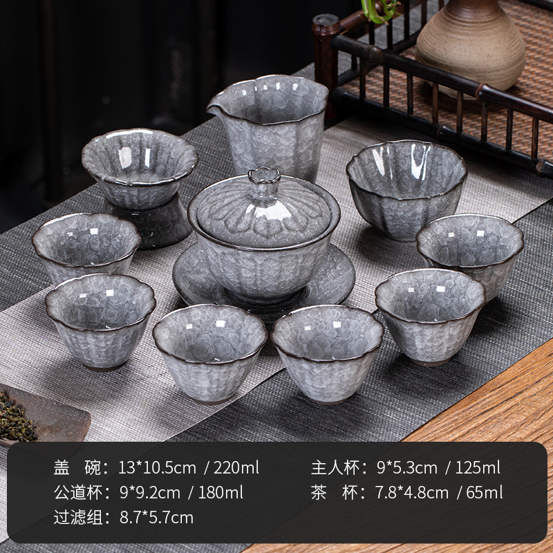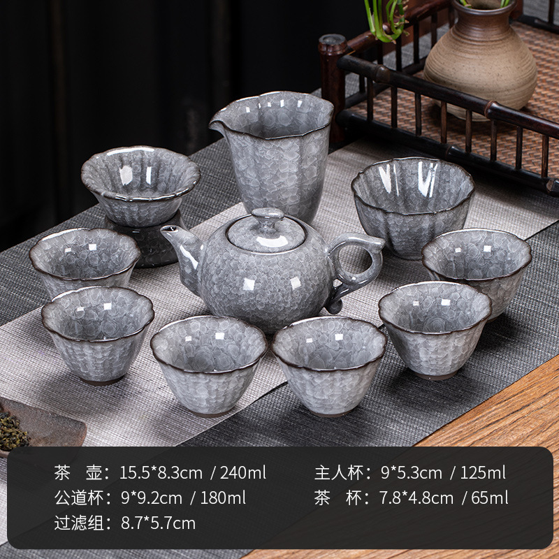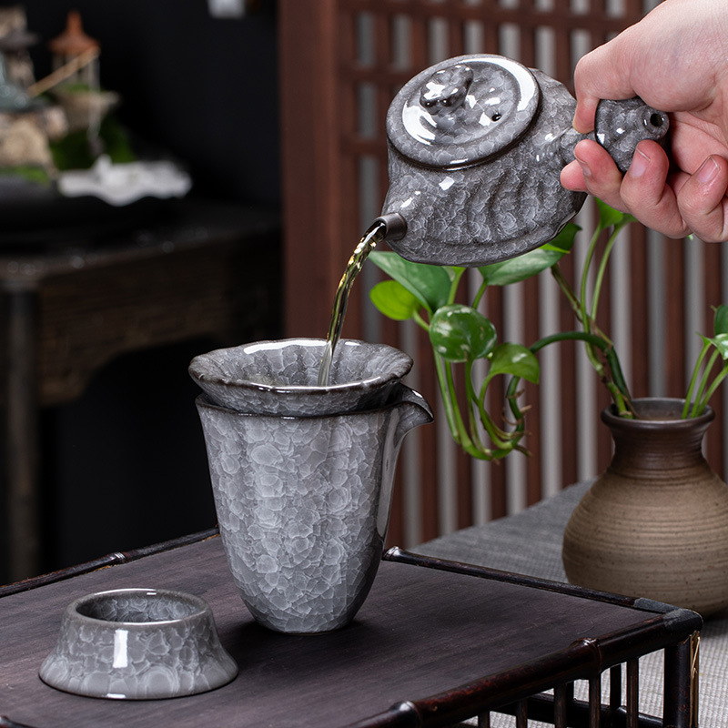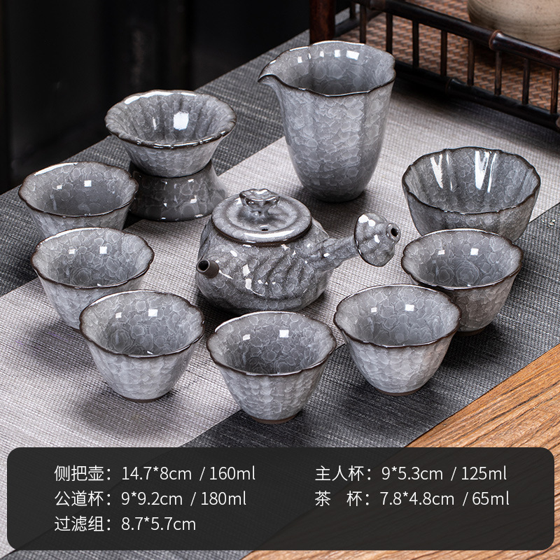黑冰冰花侧把壶三才盖碗茶具套装冰裂釉功夫茶具茶杯陶瓷铁胎茶碗