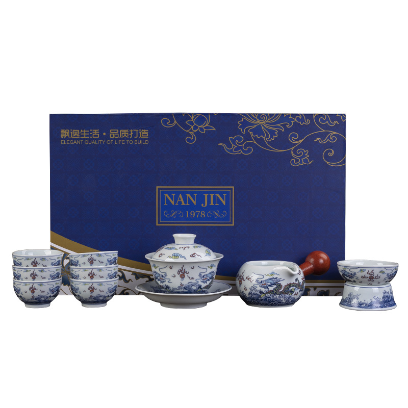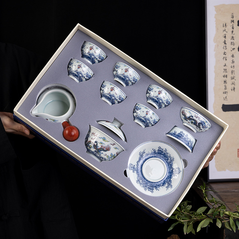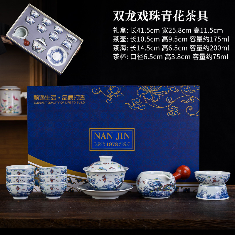 青花瓷功夫茶具大套装整套家用泡茶器茶壶盖碗茶杯商务伴手礼品瓷