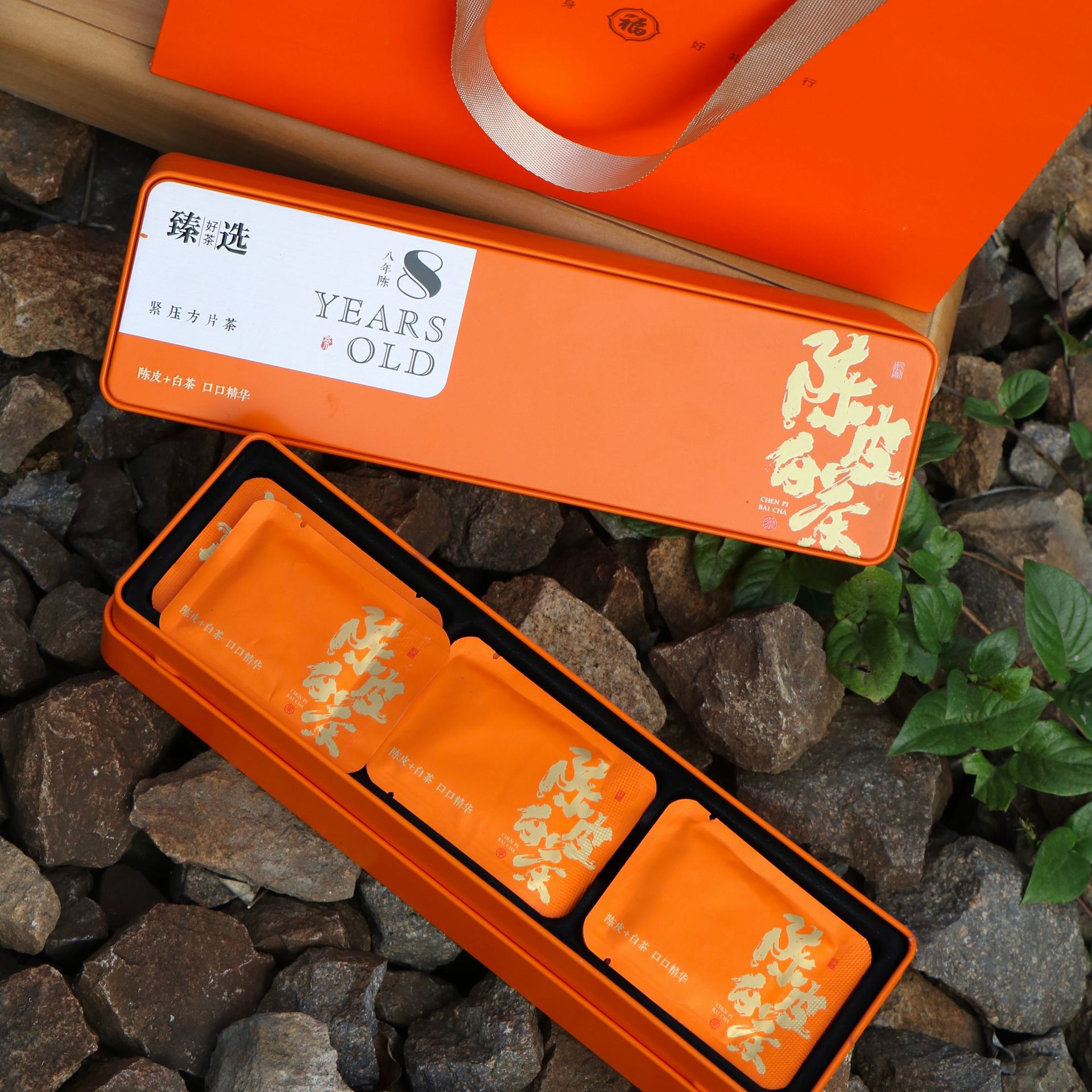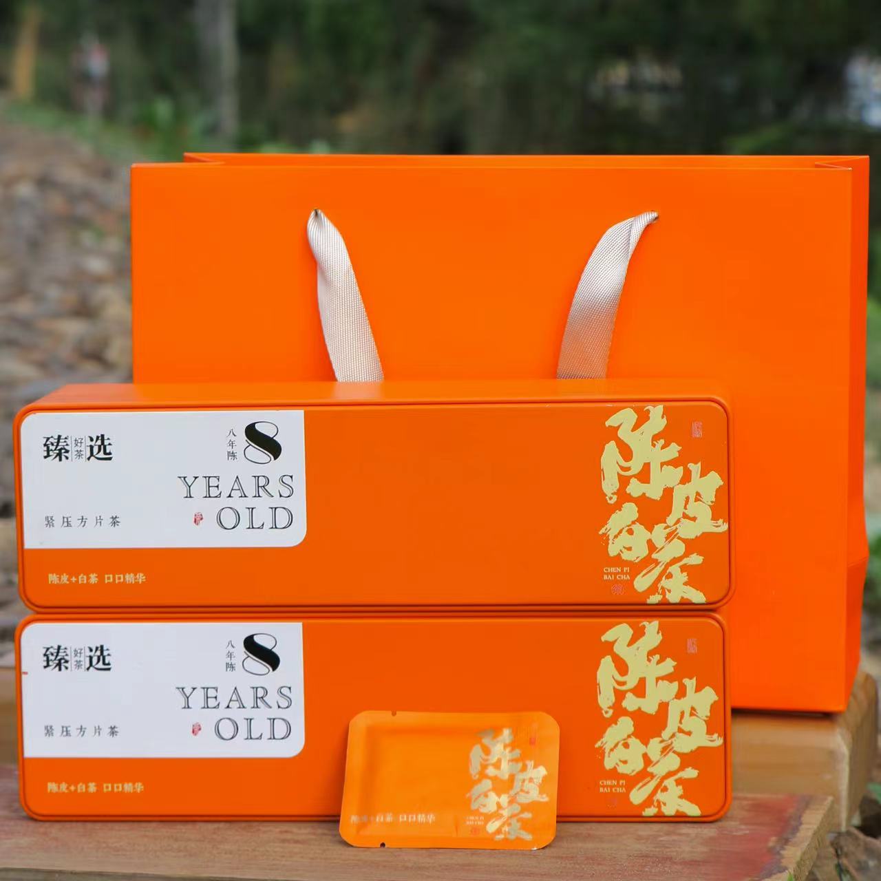 陈皮白茶福鼎2017年老寿眉老陈皮寿眉紧压茶小方片饼干茶铁盒装茶