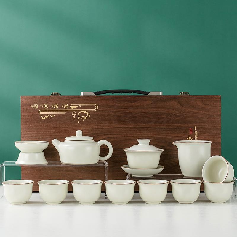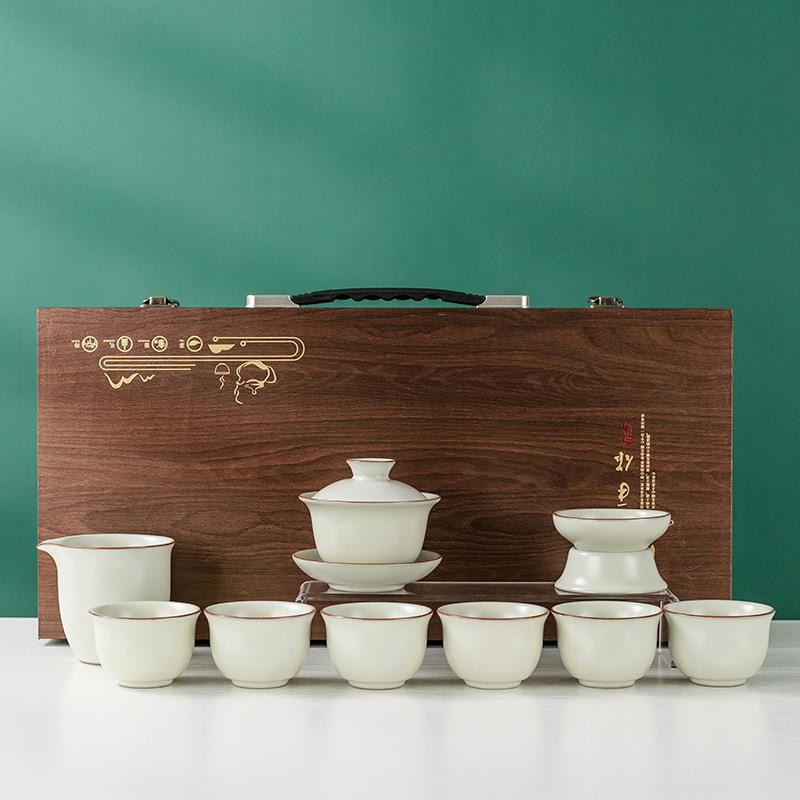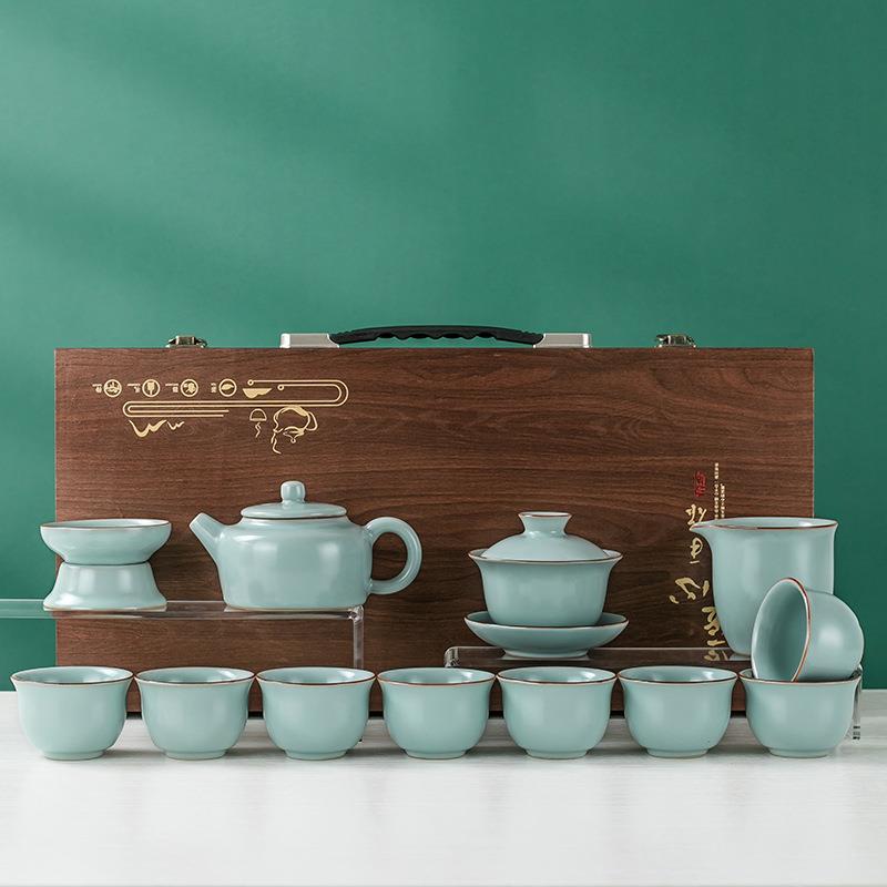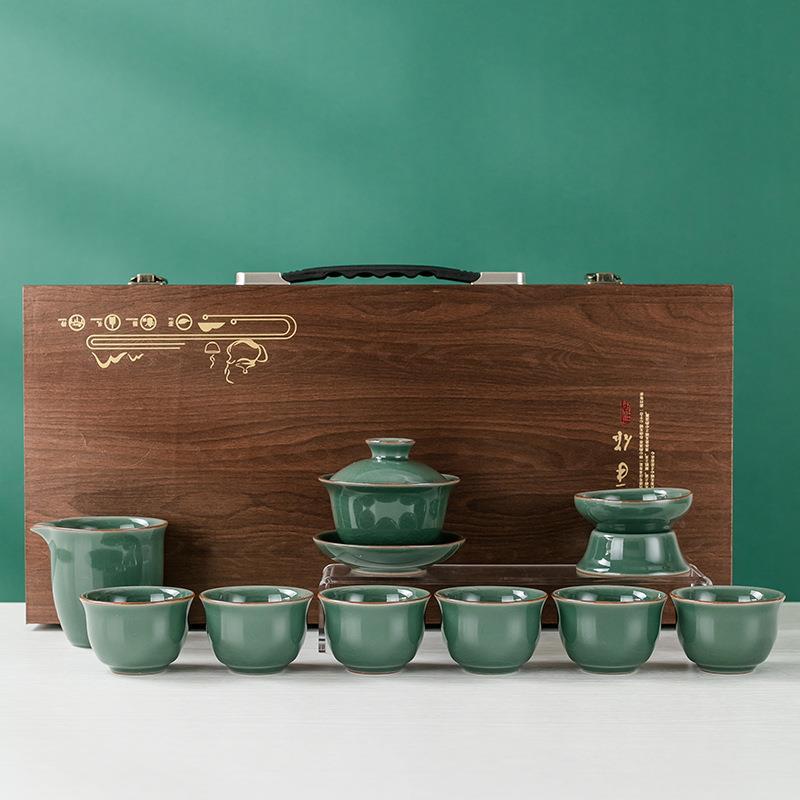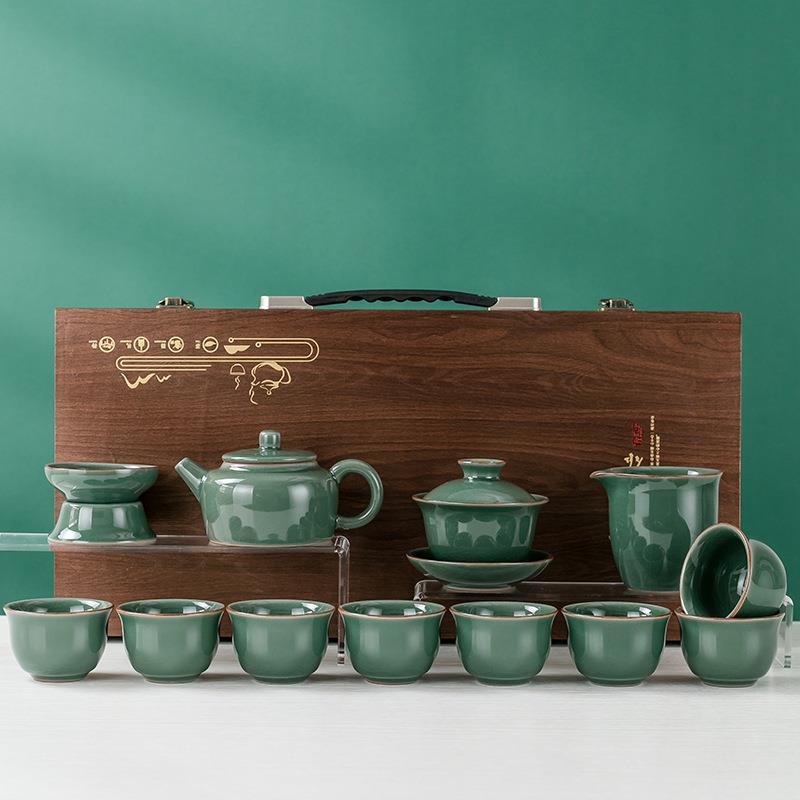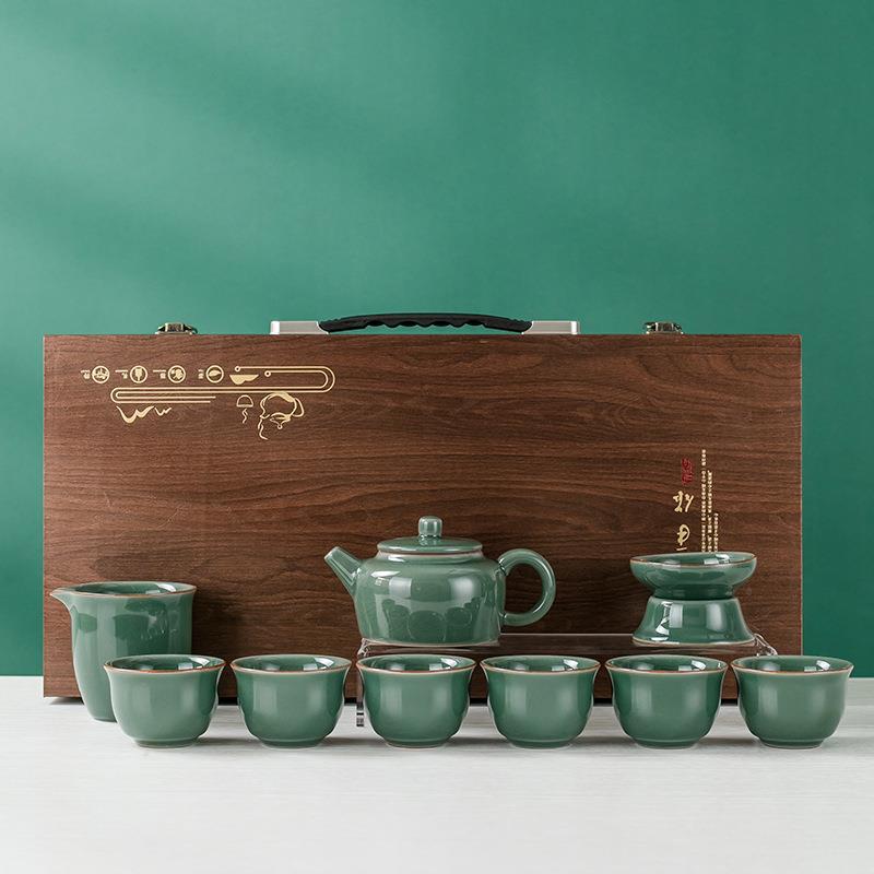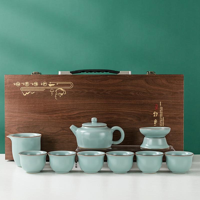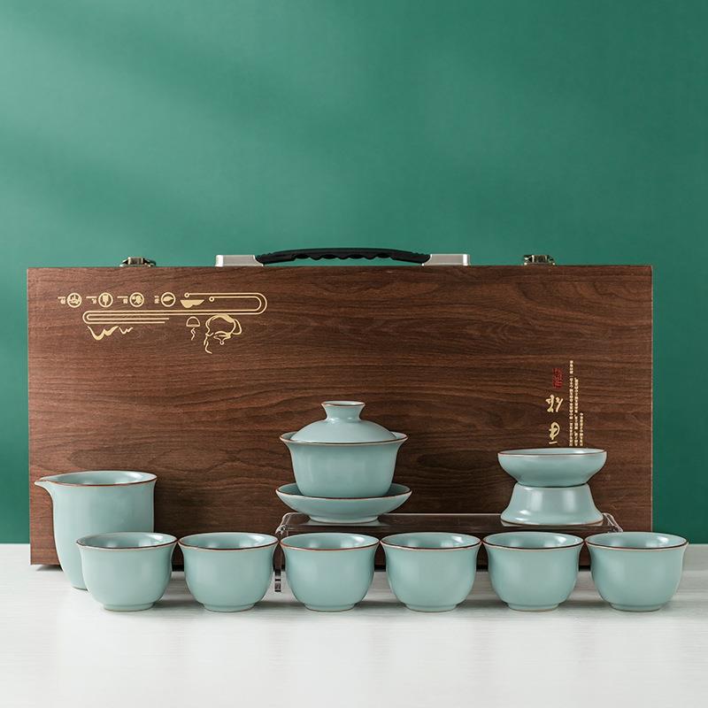 直销功夫茶具套装哥窑汝窑茶具全套创意国潮陶瓷商务地产活动礼品