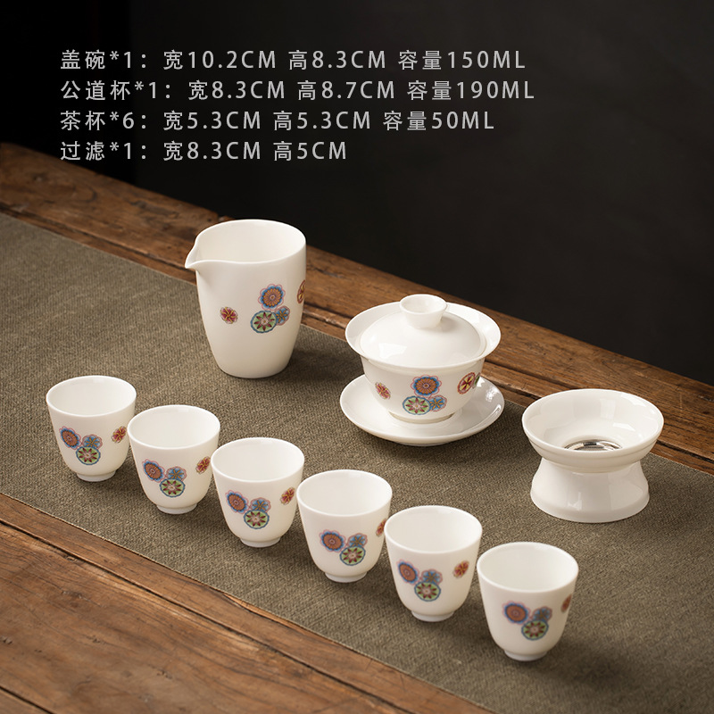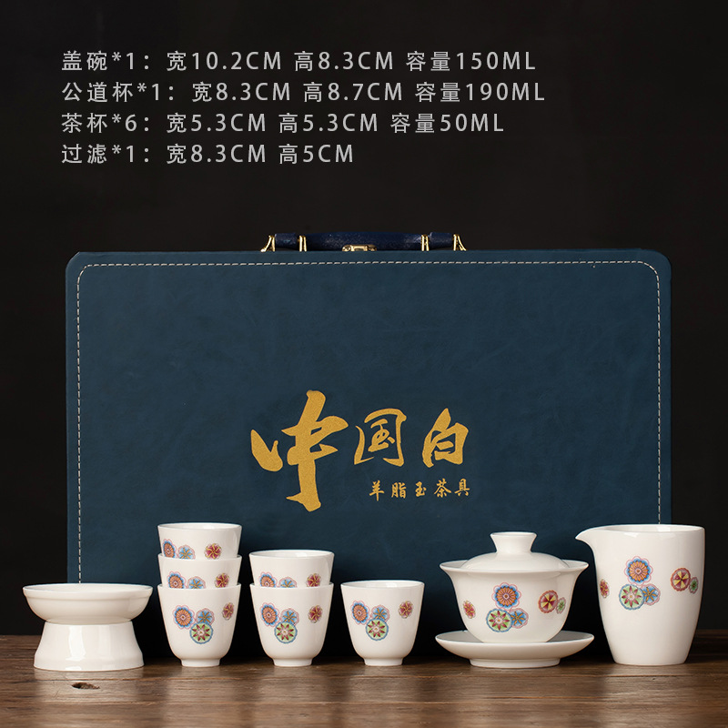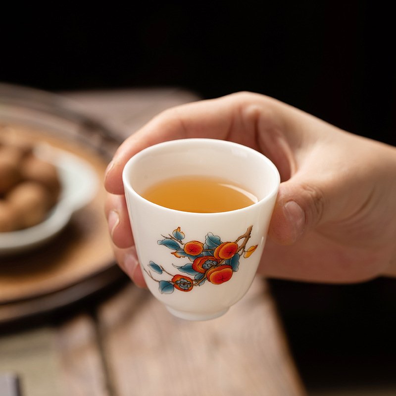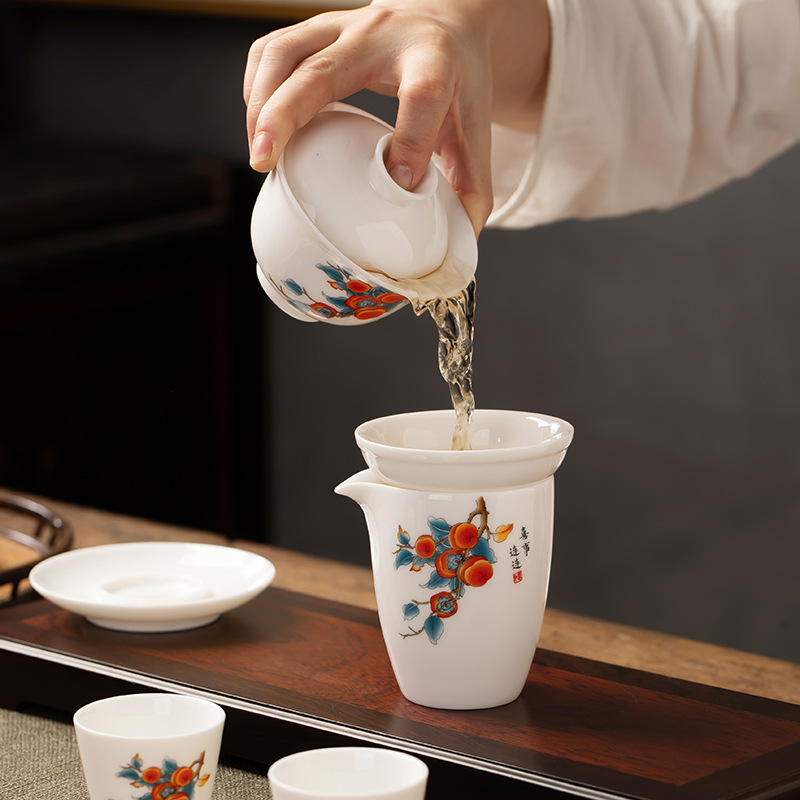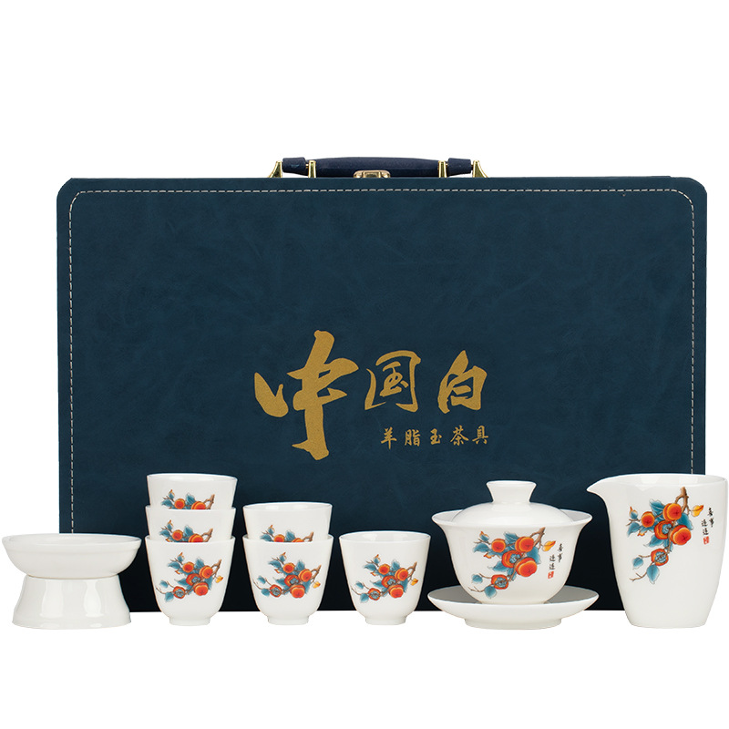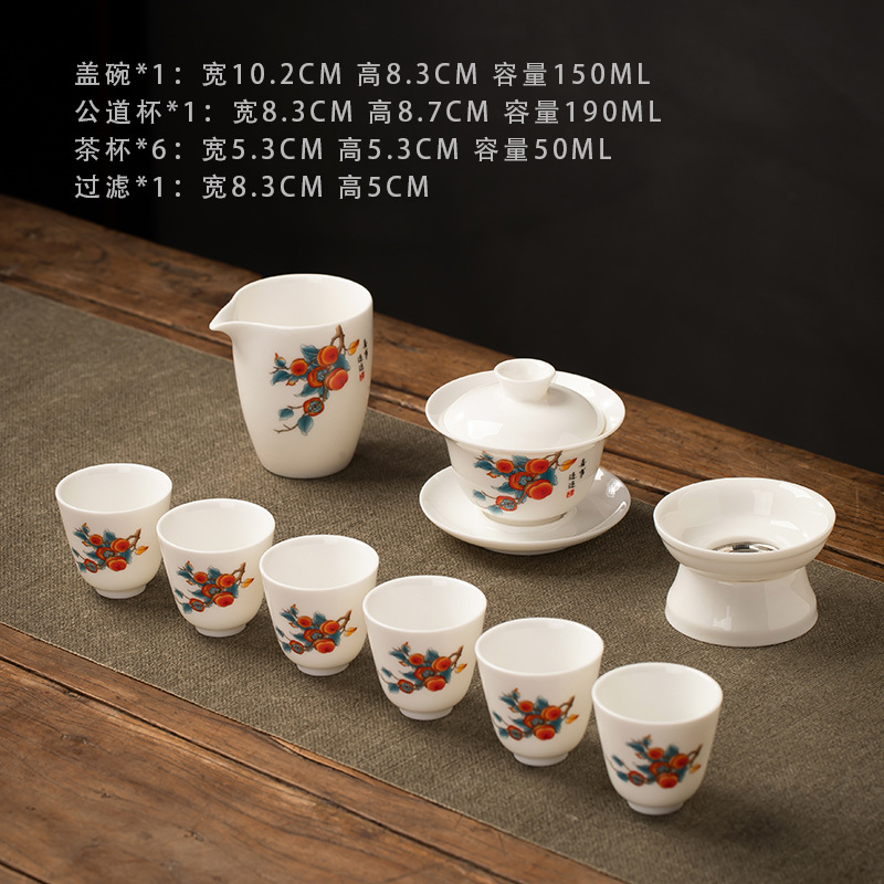 直销羊脂玉柿事如意茶具套装家用办公室轻奢高档功夫泡茶盖碗茶杯