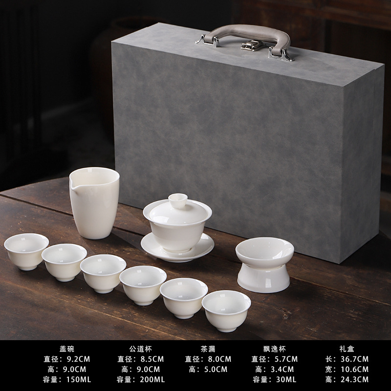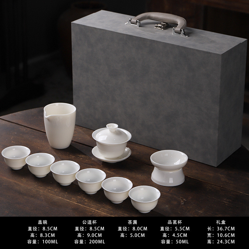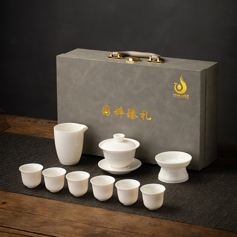 厂家直销羊脂玉茶具纯白德化玉瓷功夫茶具批发可定轻奢礼盒装logo