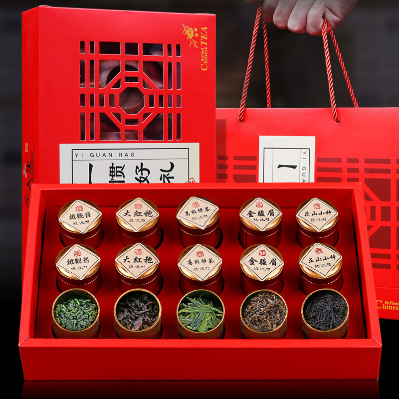 五大茗茶小罐铁观音金骏眉小种红茶大红袍茶叶抖音快手