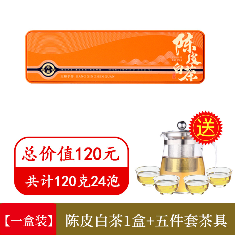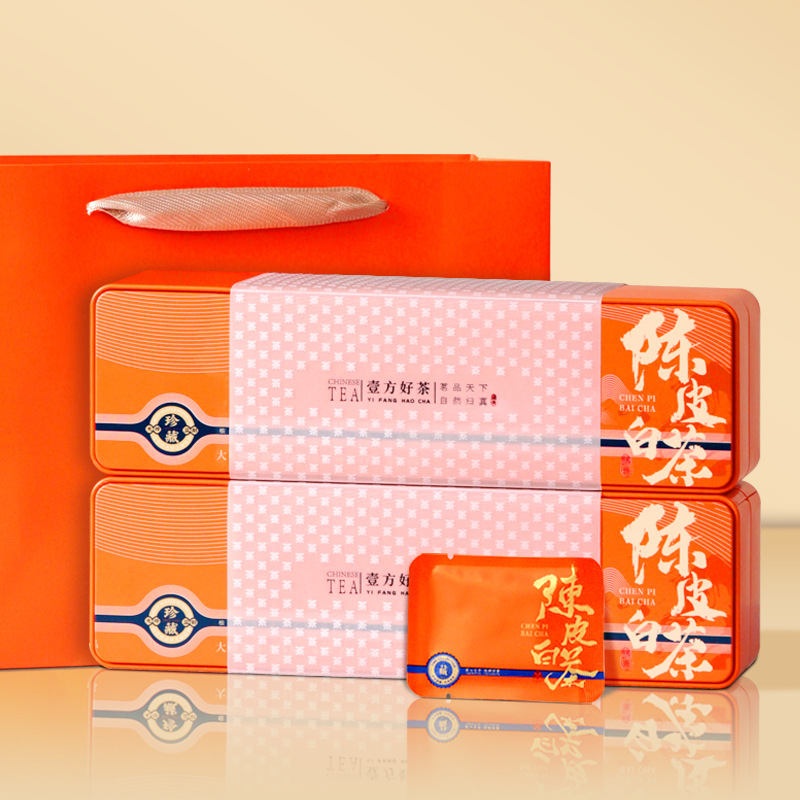 福鼎白茶陈皮白茶老白茶寿眉小方片茶饼礼盒装茶叶铁盒送礼批发
