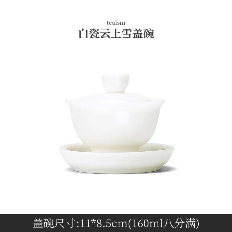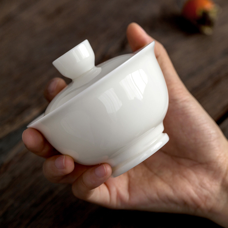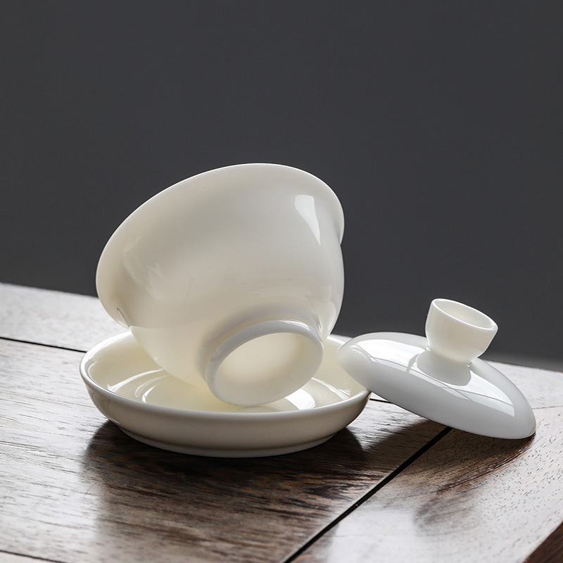 高档羊脂玉中国白大号盖碗敬茶杯陶瓷碗家用泡茶碗功夫三才泡茶碗