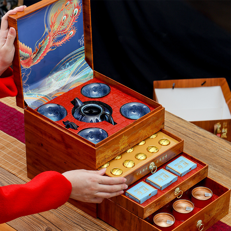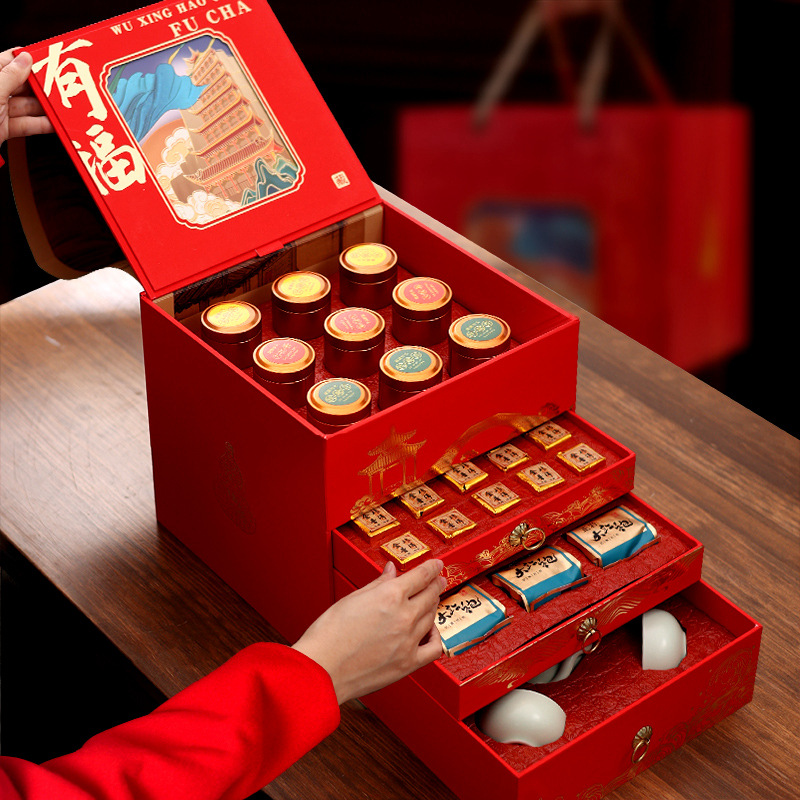 金骏眉茶叶小罐红茶礼盒装批发大红袍普洱熟茶直播带货送茶具送礼
