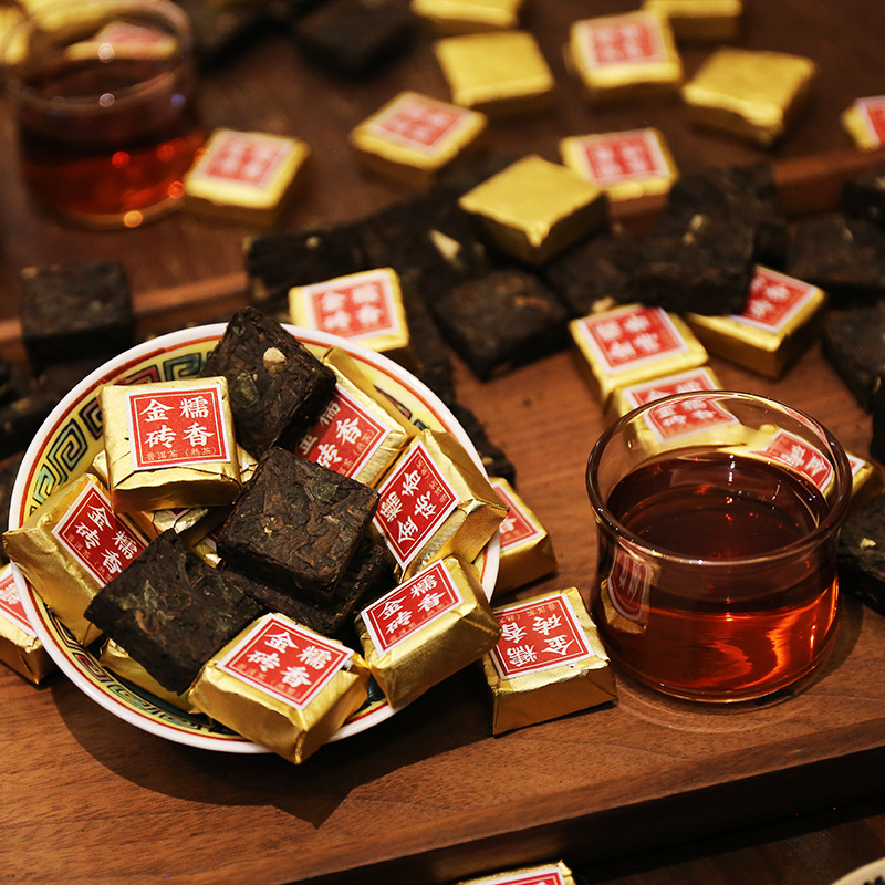 厂家批发云南糯米香普洱茶熟茶500g陈年熟普糯香小金砖(简装)