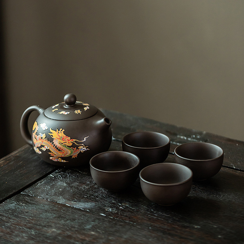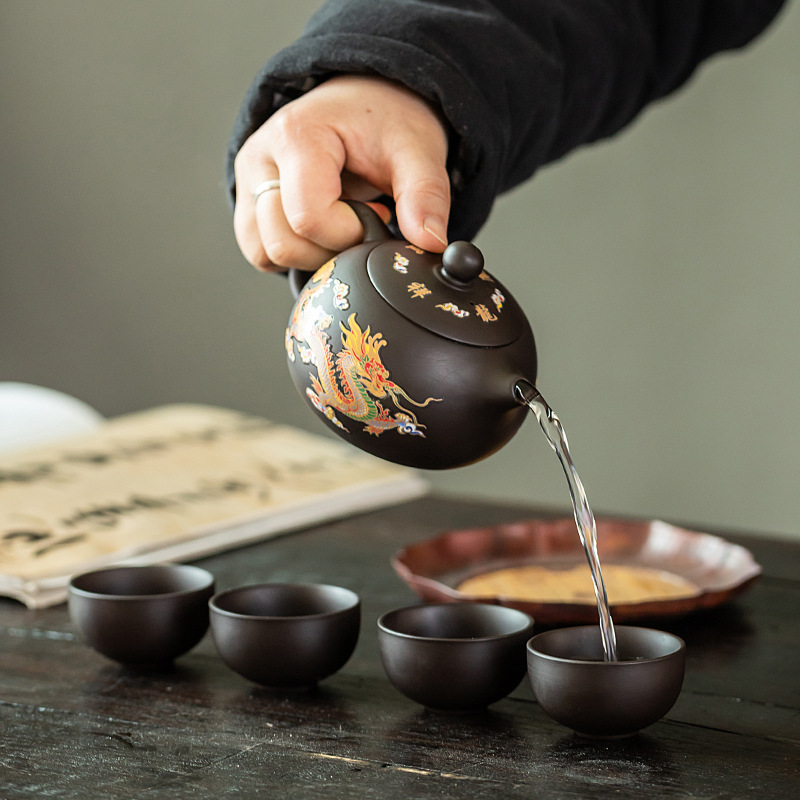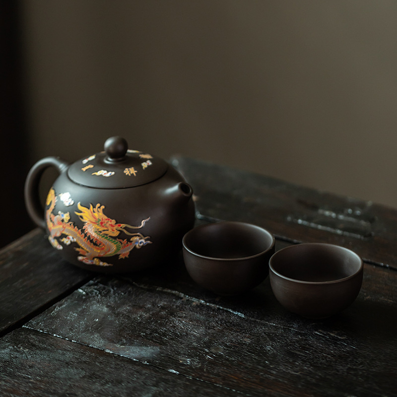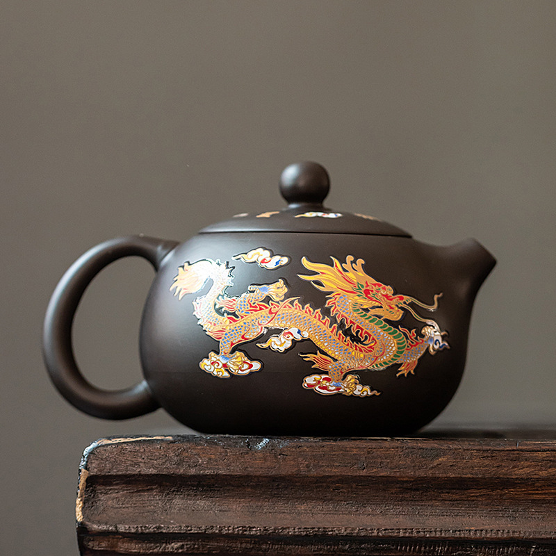 原创厂家凤鸣壶遇热变色紫砂壶手工龙凤呈祥大号茶壶泡茶壶西施壶