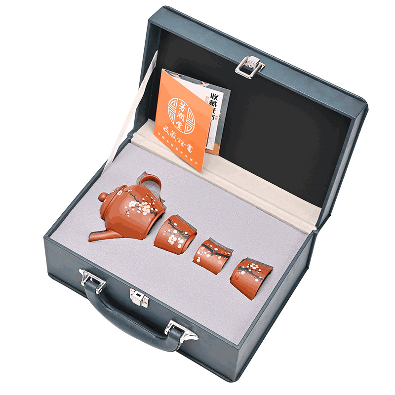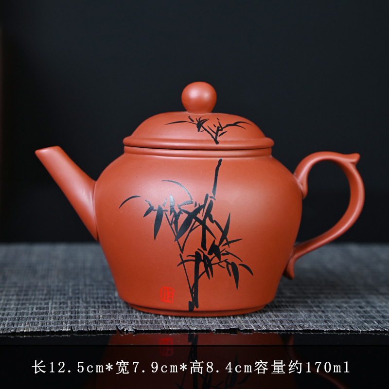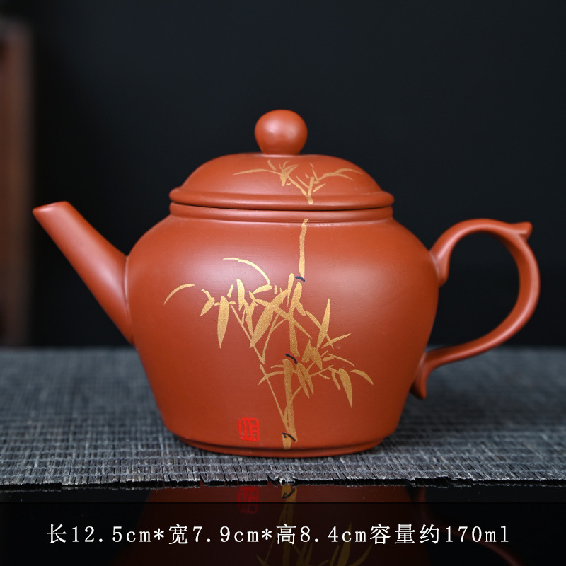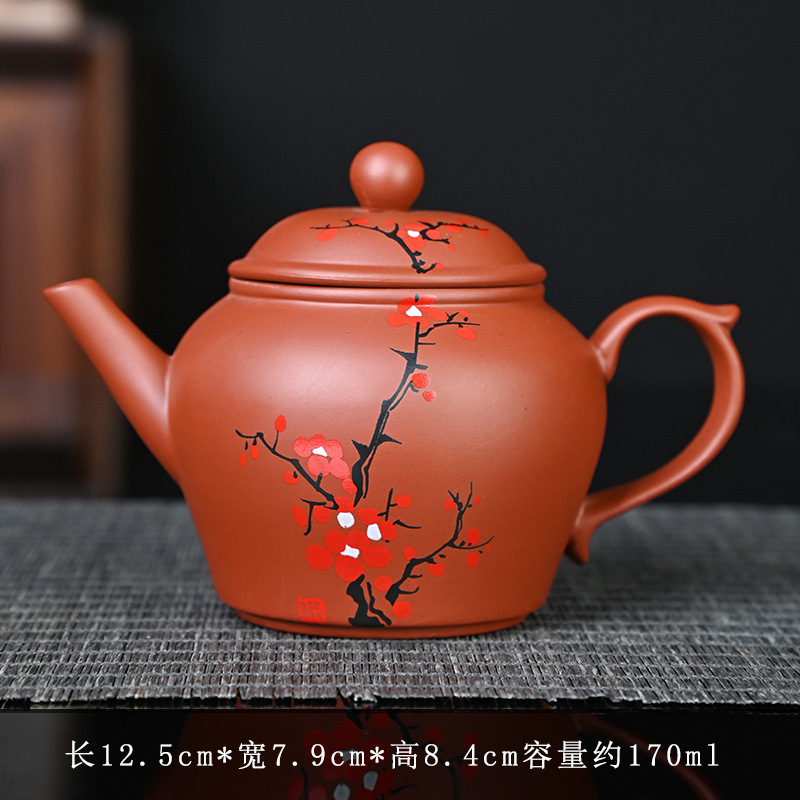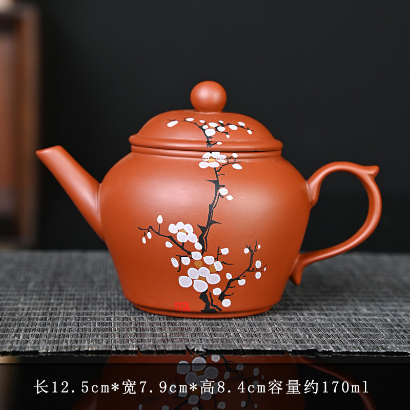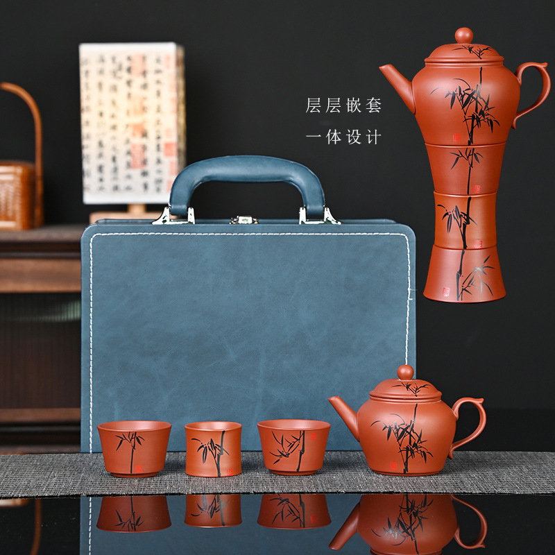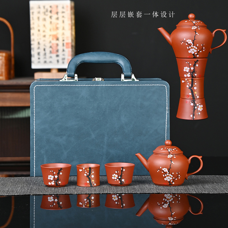 原矿朱泥紫砂茶壶套装创意茶杯可叠放泡茶壶金竹梅花手绘整套茶具