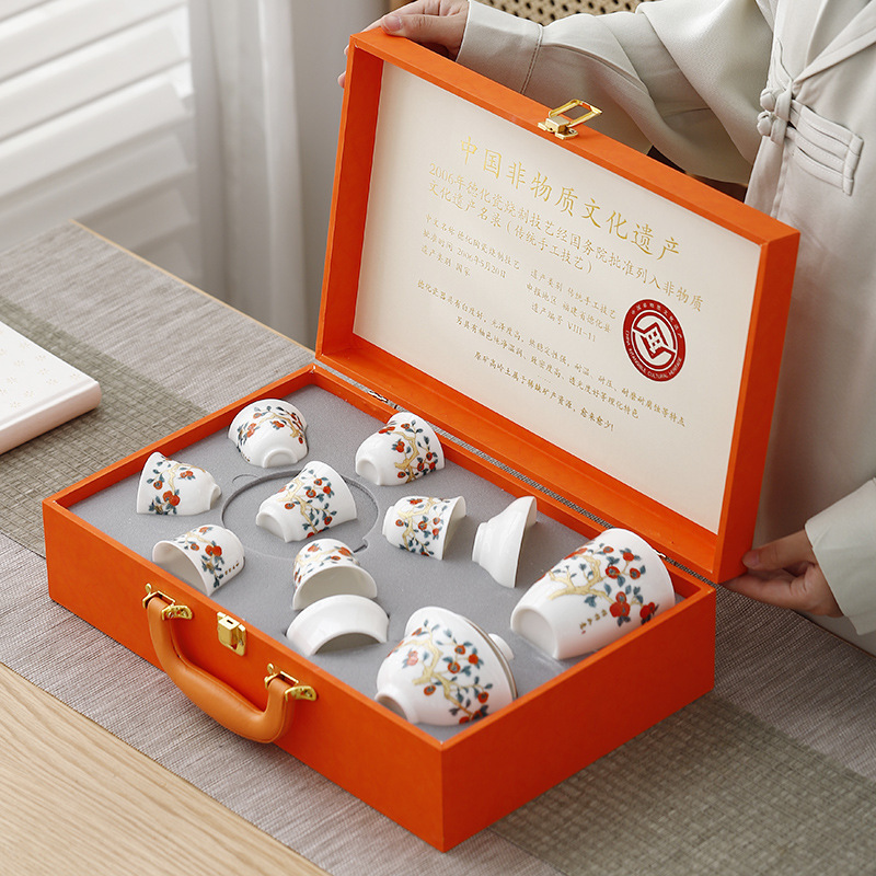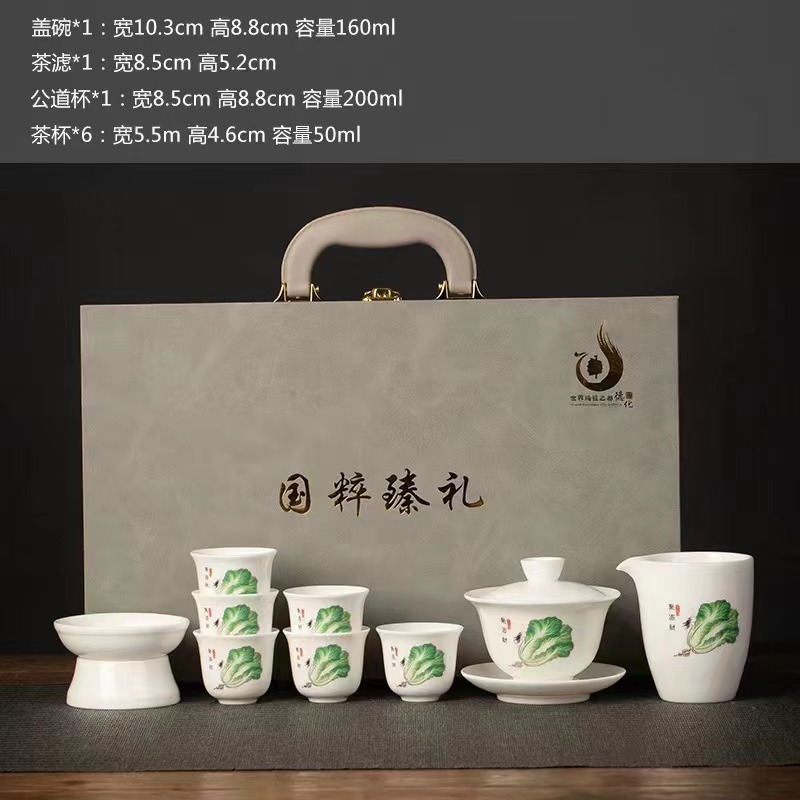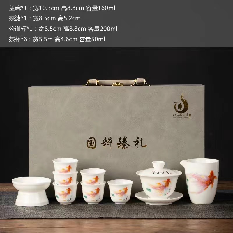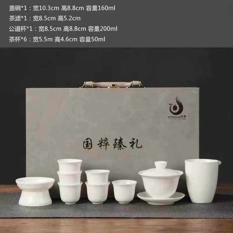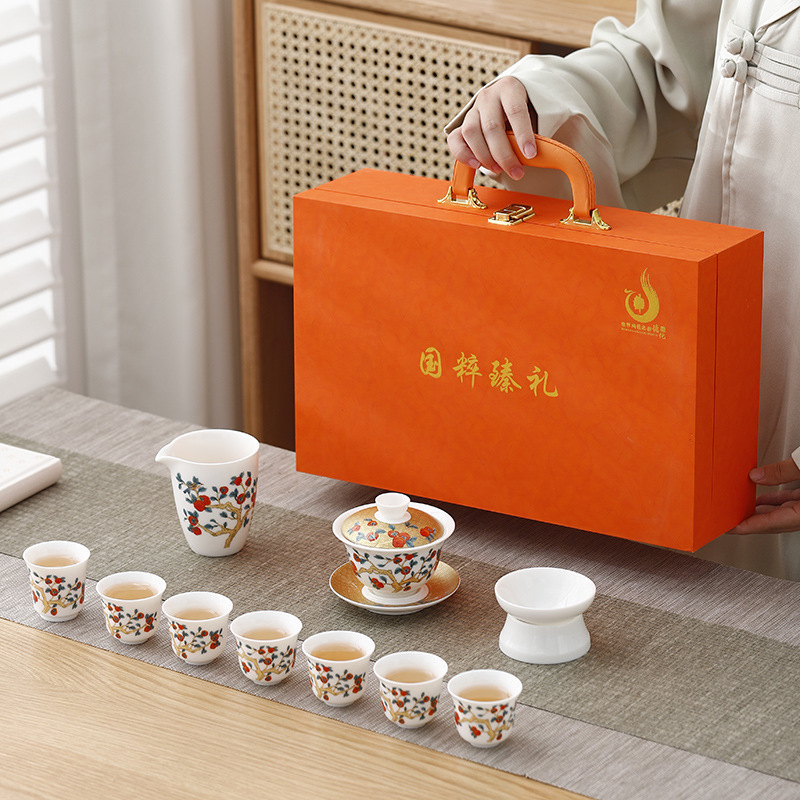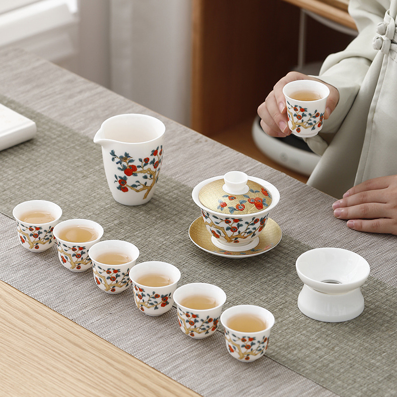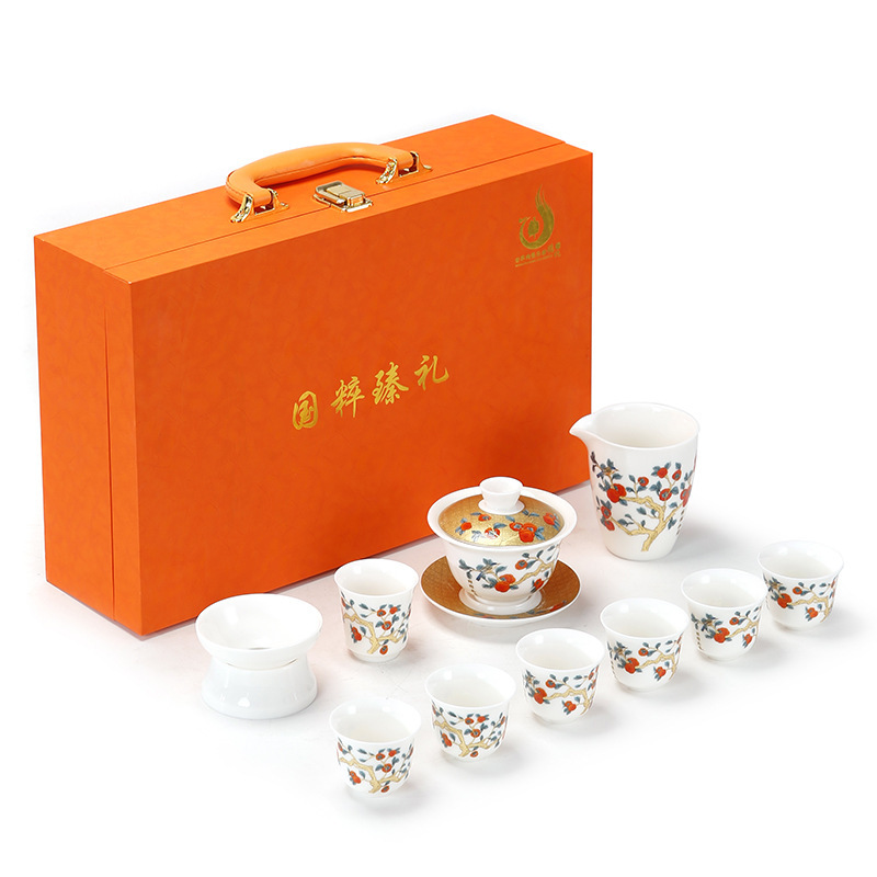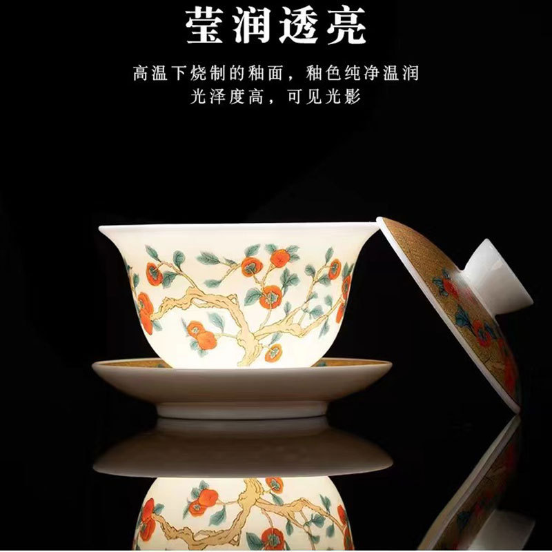 柿柿事事如意羊脂玉白瓷整套功夫茶具套装家用办公陶瓷伴手礼LOGO