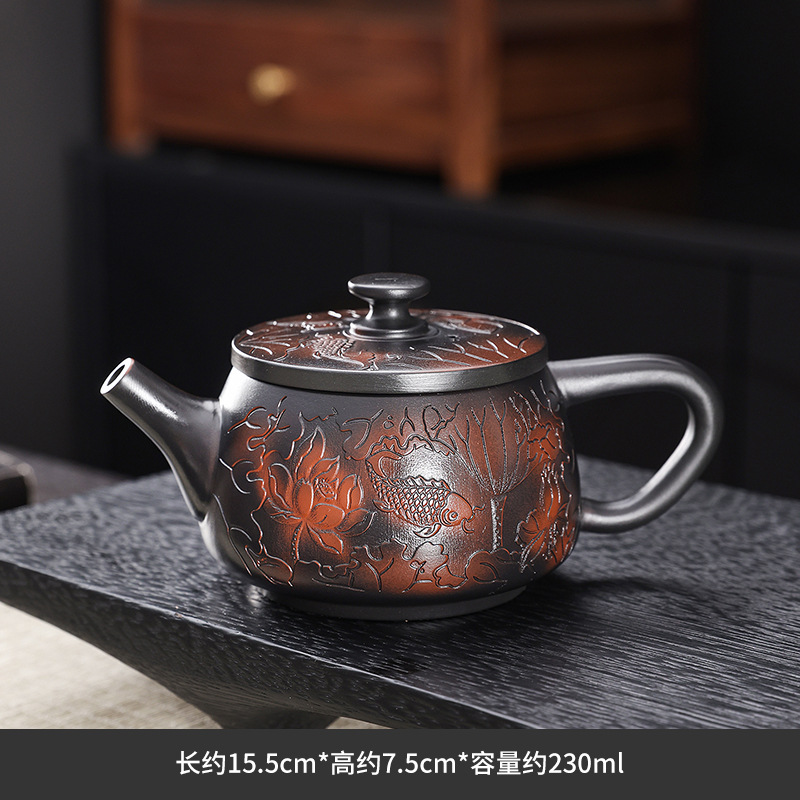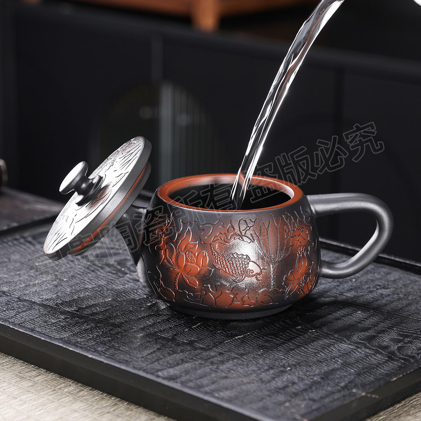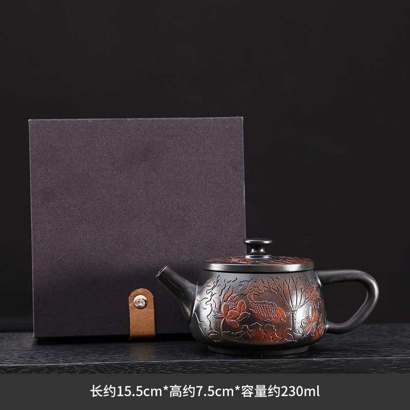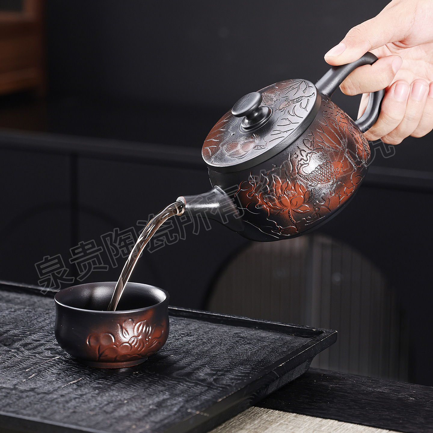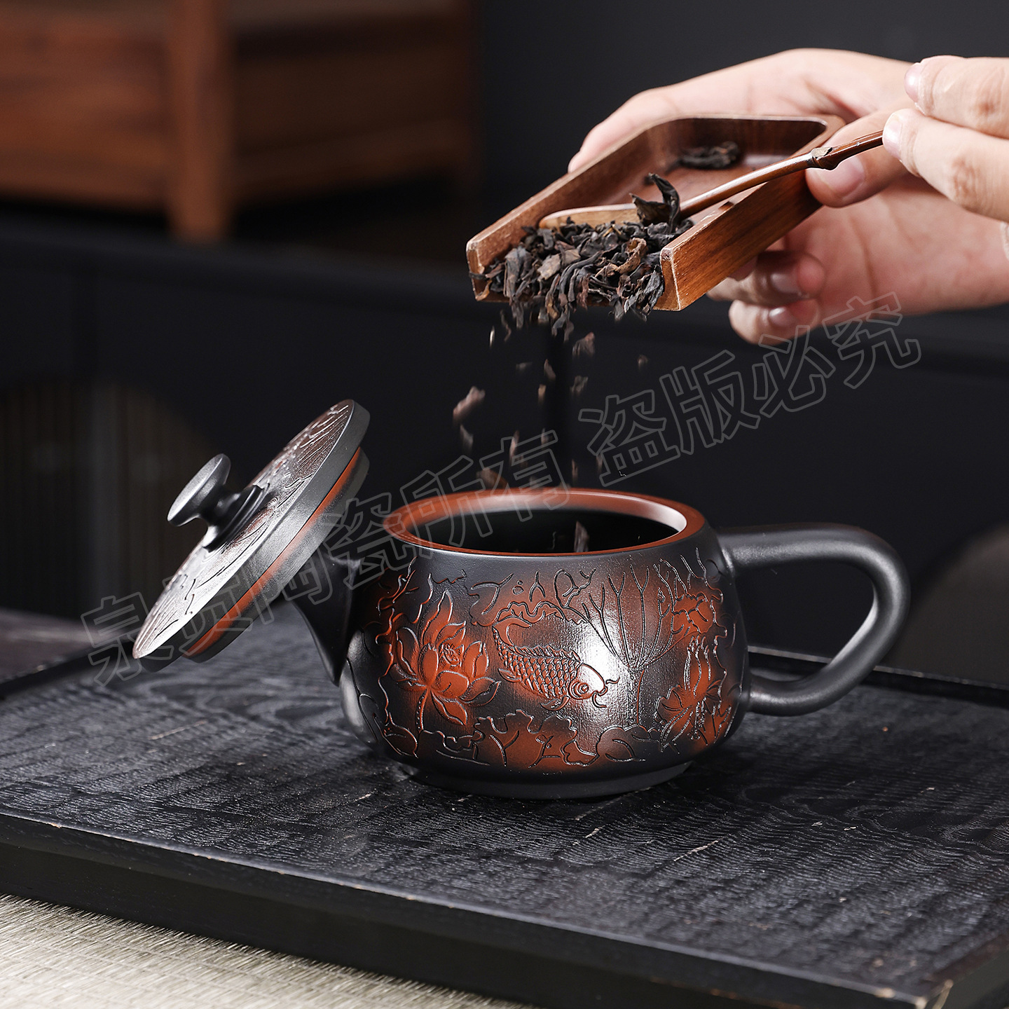 紫陶茶壶可提可旋转可凤鸣浮雕荷韵壶高档礼盒装汉瓦壶单个泡茶壶