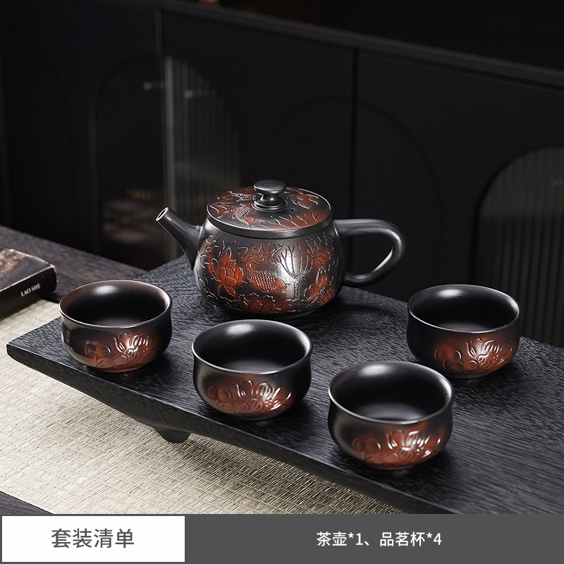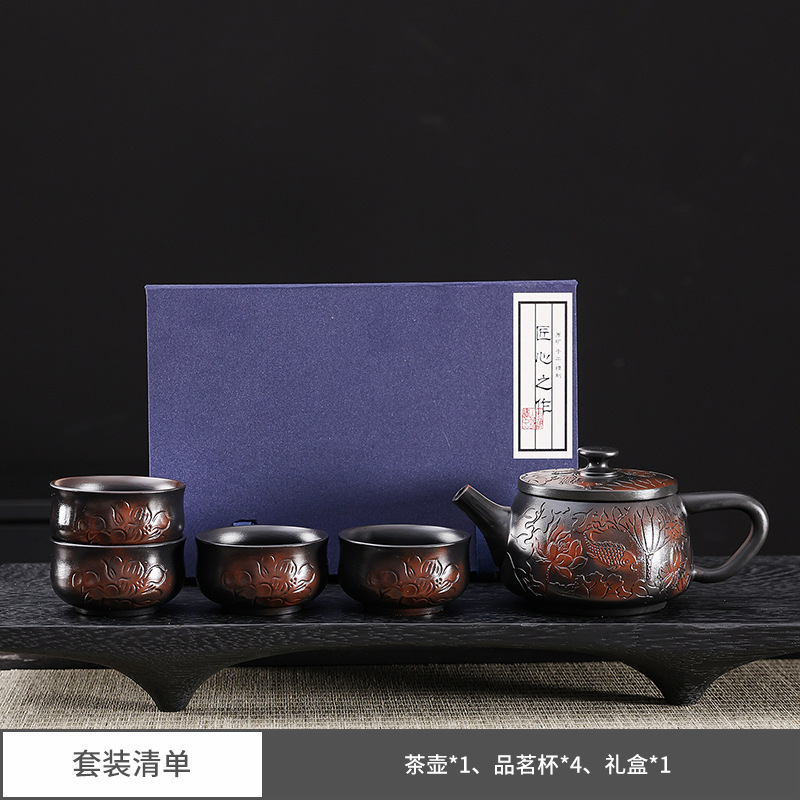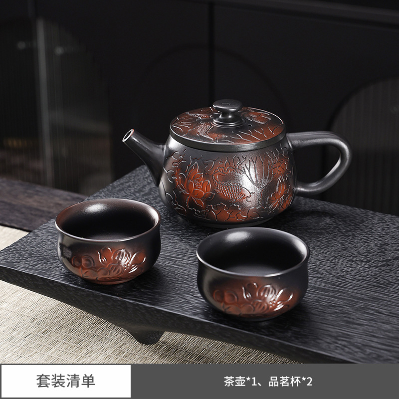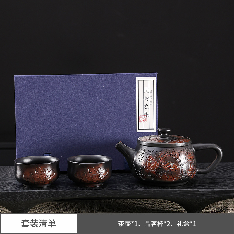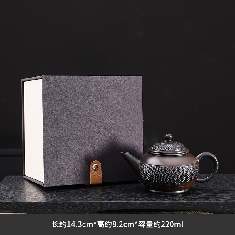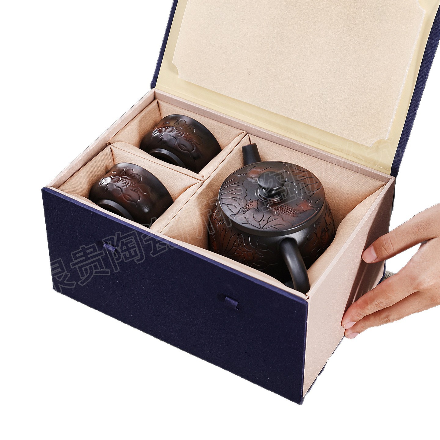 紫陶茶壶可提可旋转可凤鸣浮雕荷韵壶高档礼盒装汉瓦壶单个泡茶壶