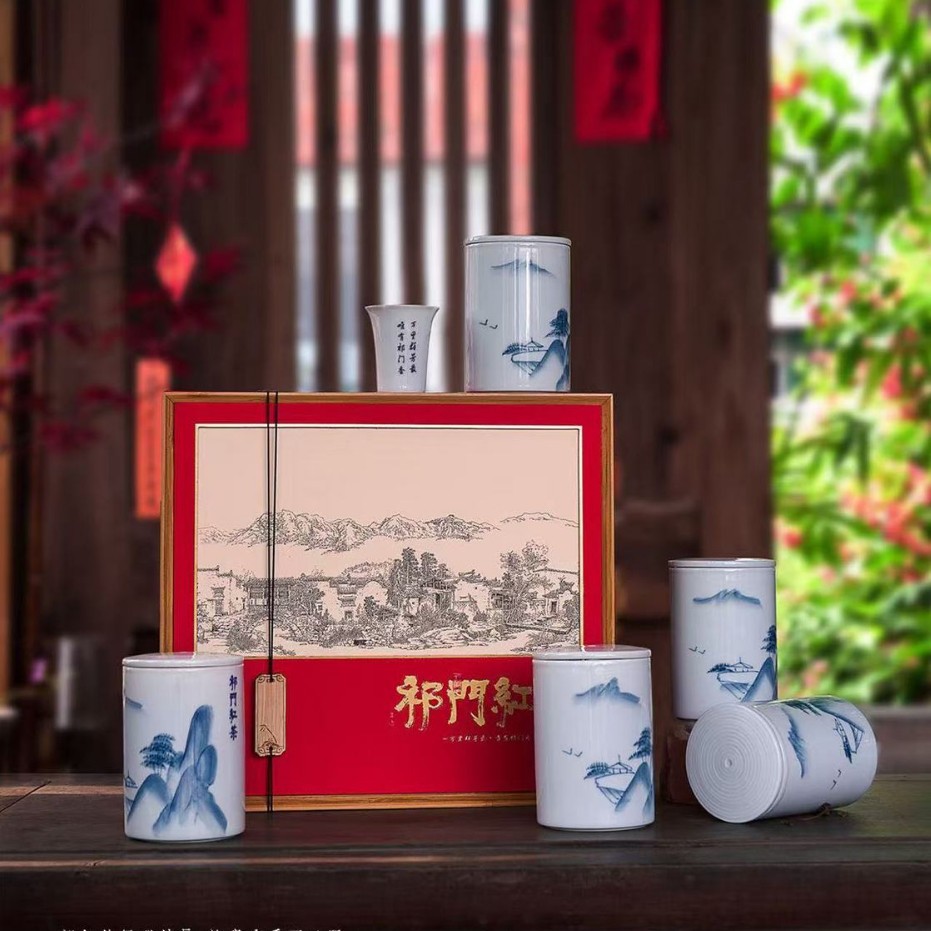 祁门红茶茶叶高档陶瓷罐礼盒装祁红金针伴手礼茗茶茶礼真的产地茶