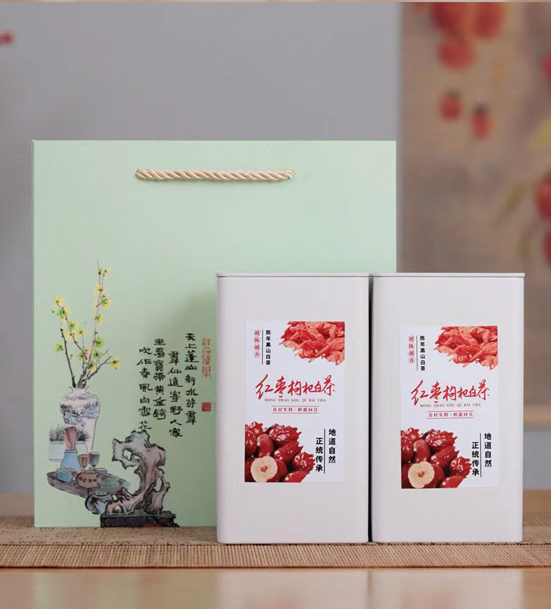 红枣枸杞白茶花草茶茶叶红枣枸杞组合独立包装小圆饼礼盒罐装