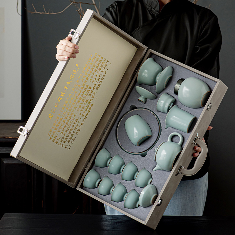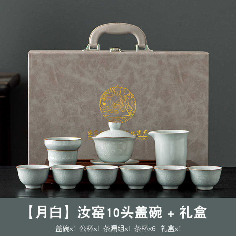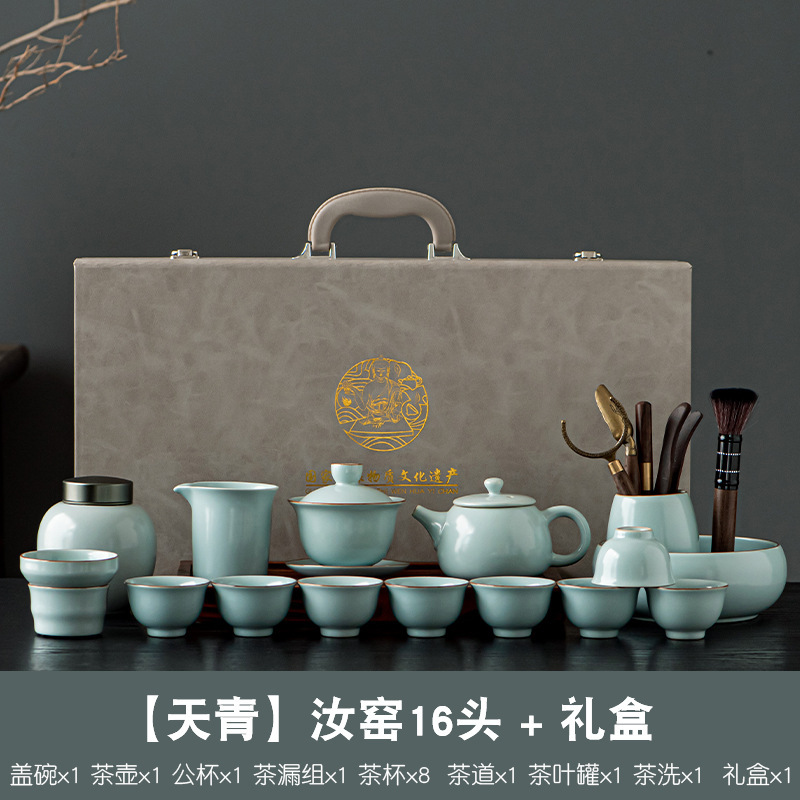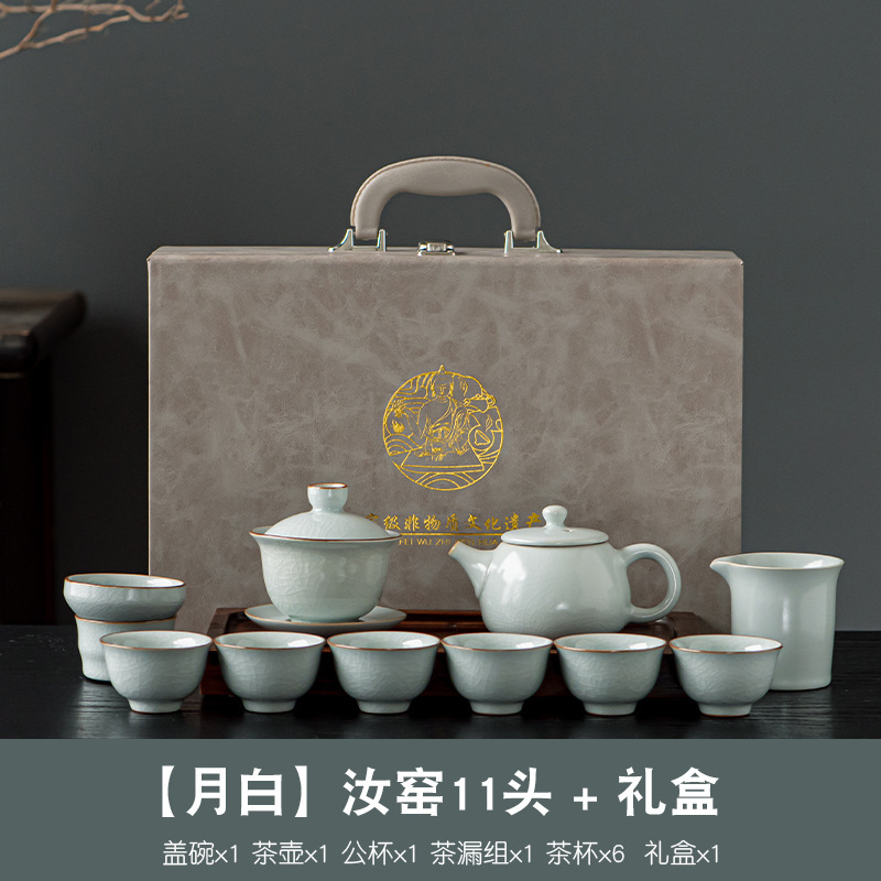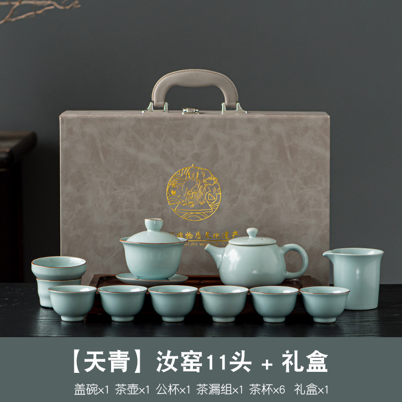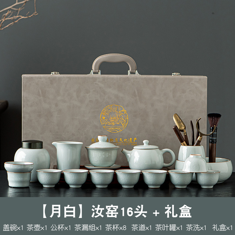 汝窑功夫茶具套装礼盒装家用整套开片可养陶瓷茶具礼品可定LOGO