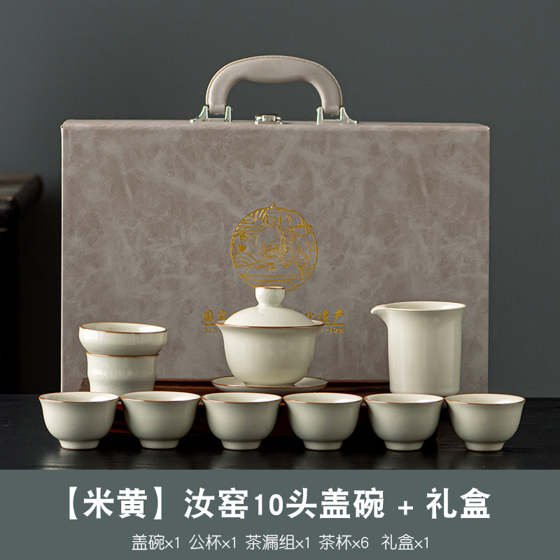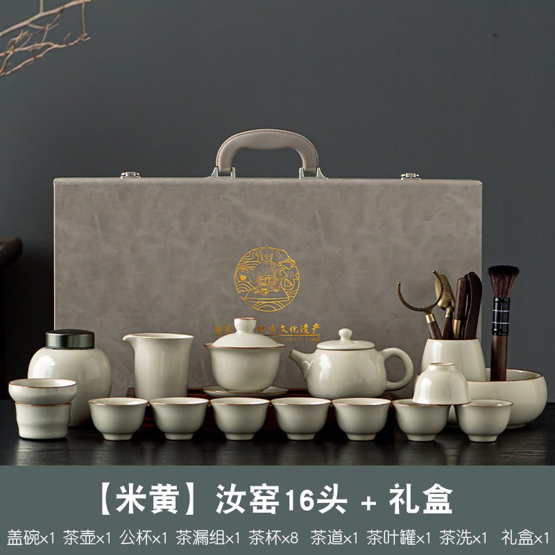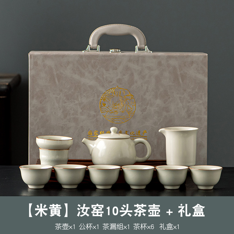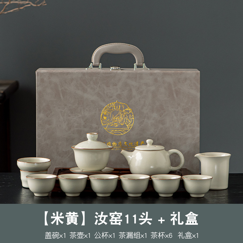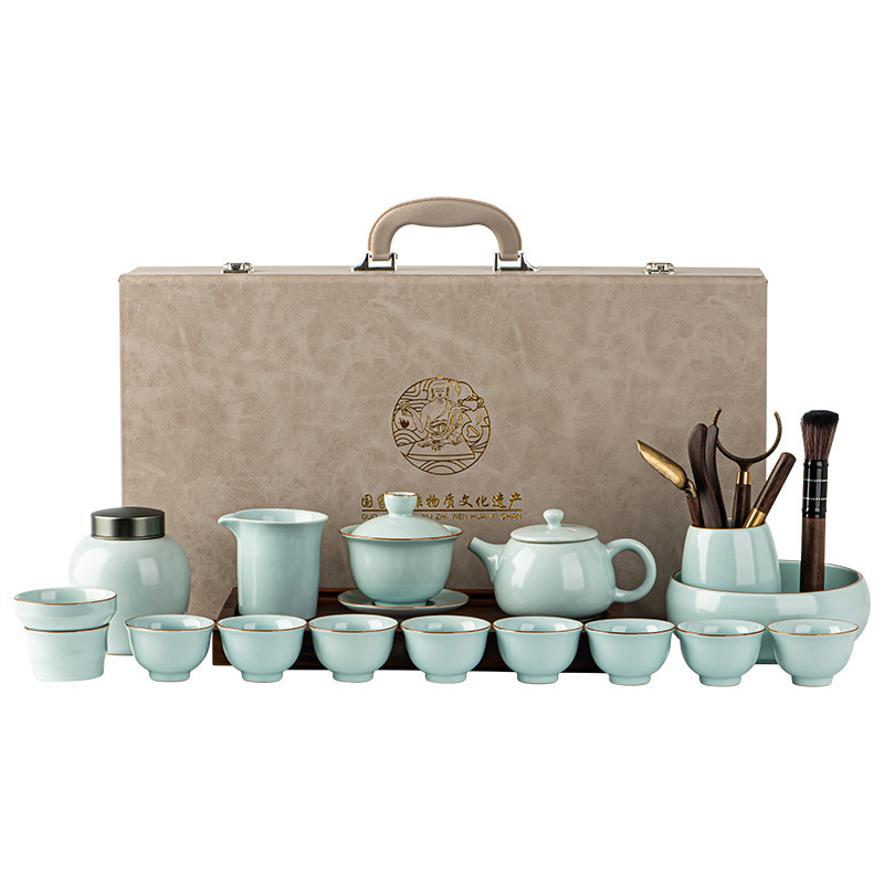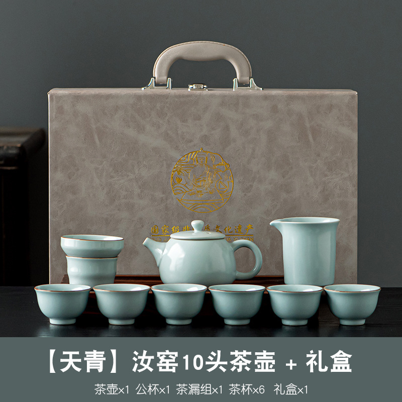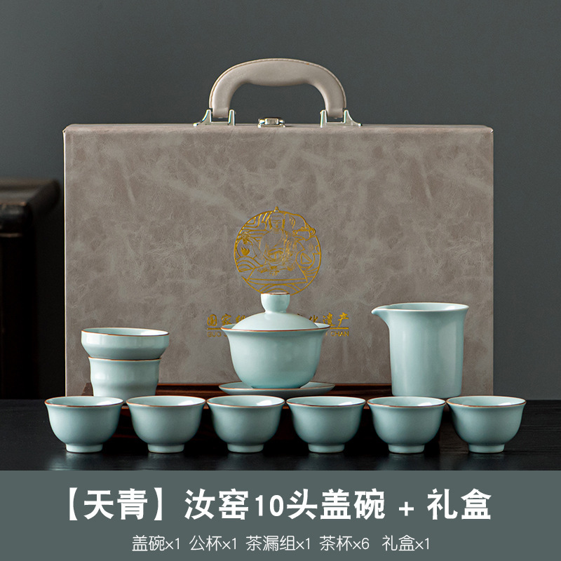 汝窑功夫茶具套装礼盒装家用整套开片可养陶瓷茶具礼品可定LOGO