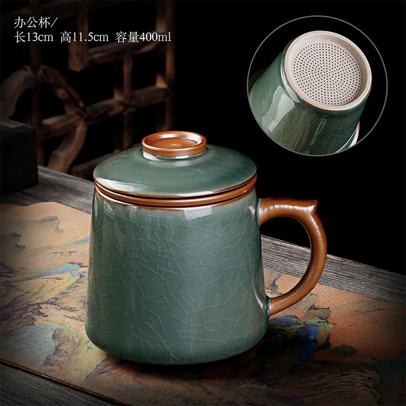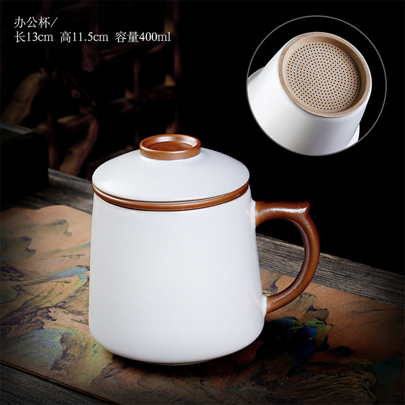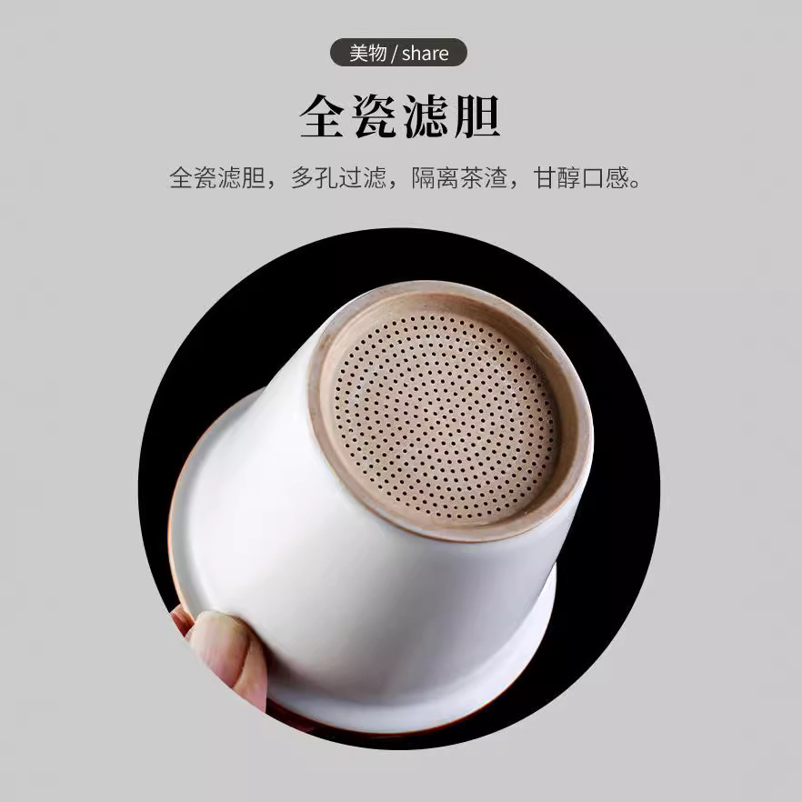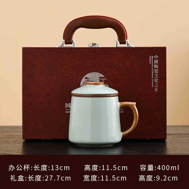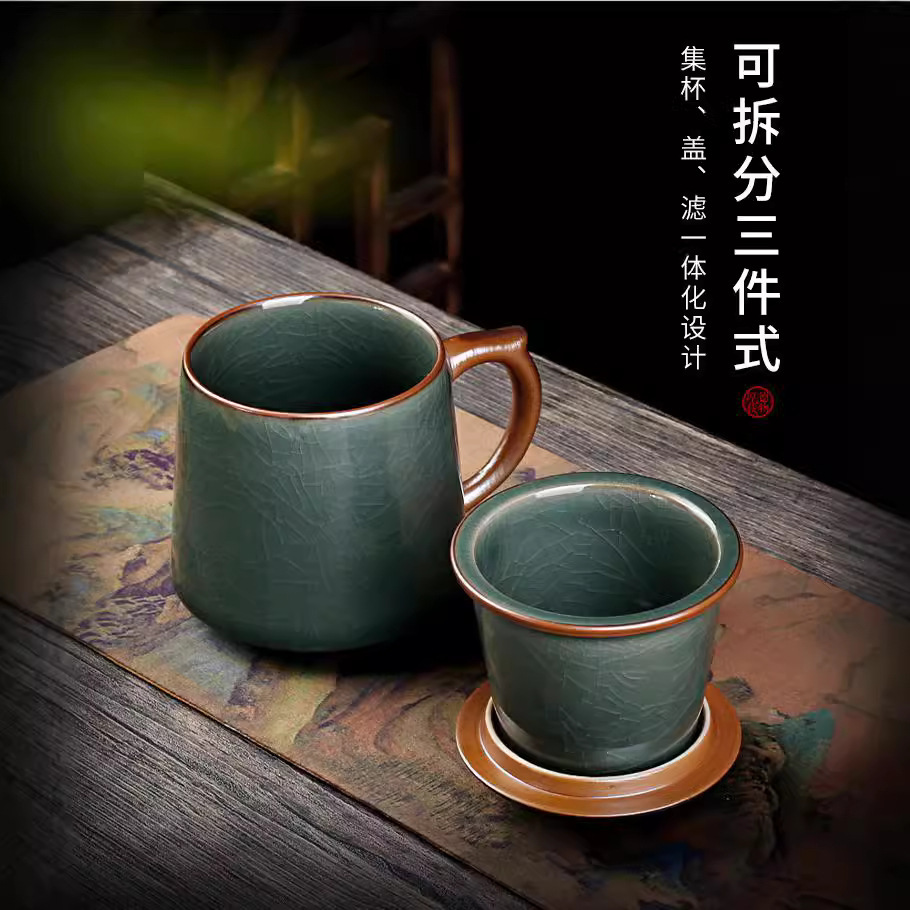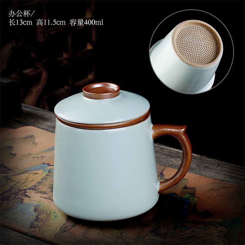 汝窑马克杯办公杯水杯茶水分离过滤个人泡茶杯会议礼品茶壶陶瓷杯