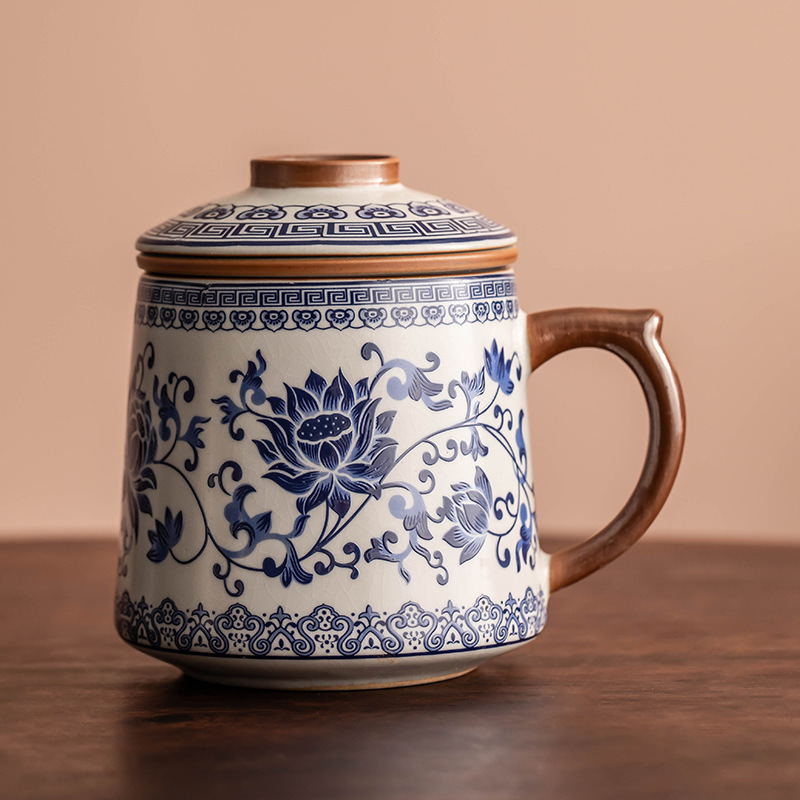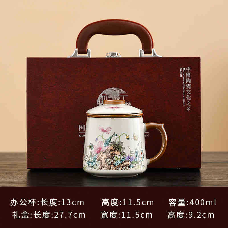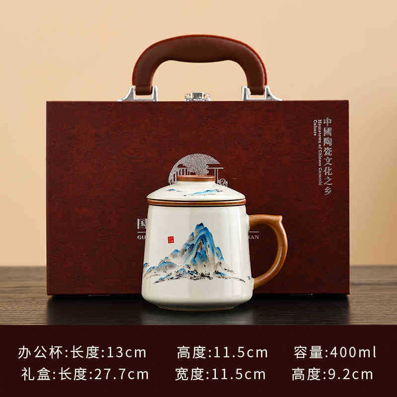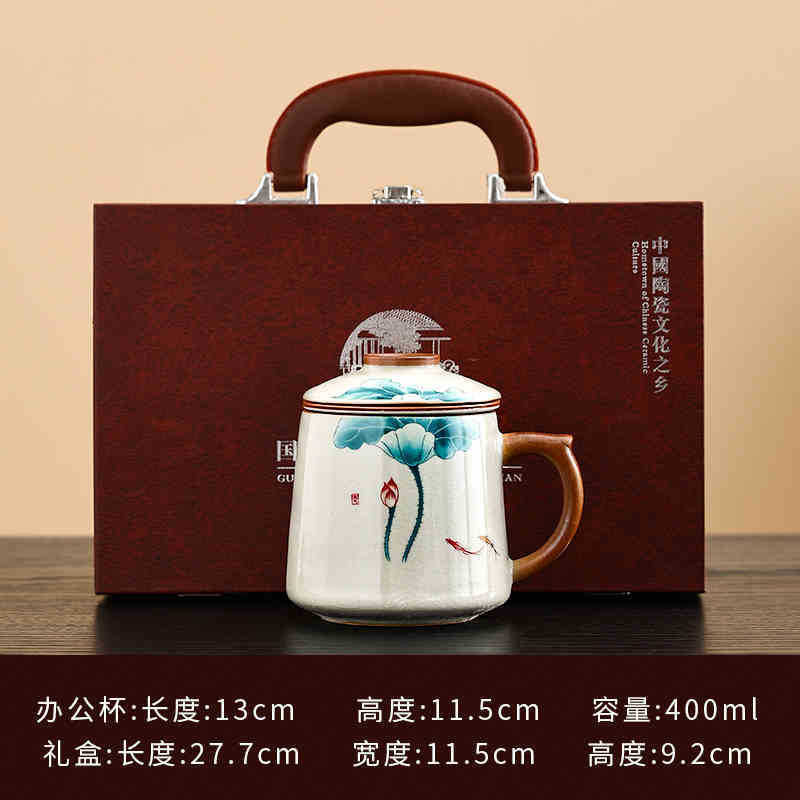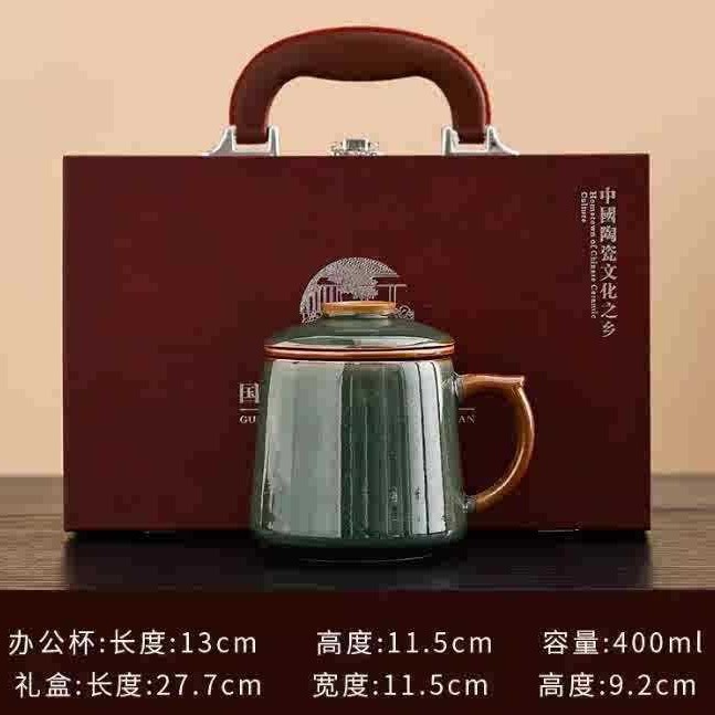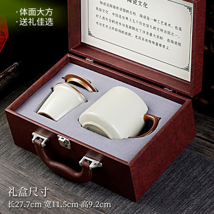 汝窑马克杯办公杯水杯茶水分离过滤个人泡茶杯会议礼品茶壶陶瓷杯