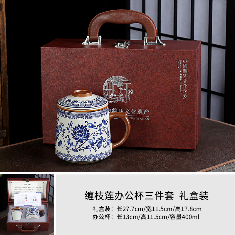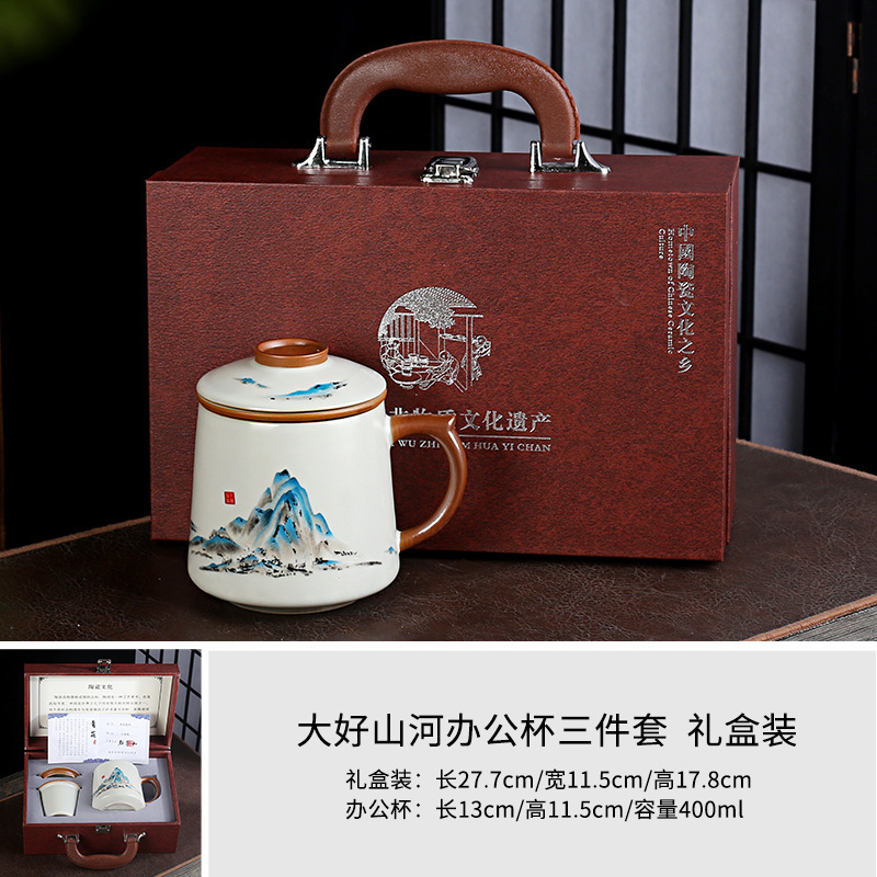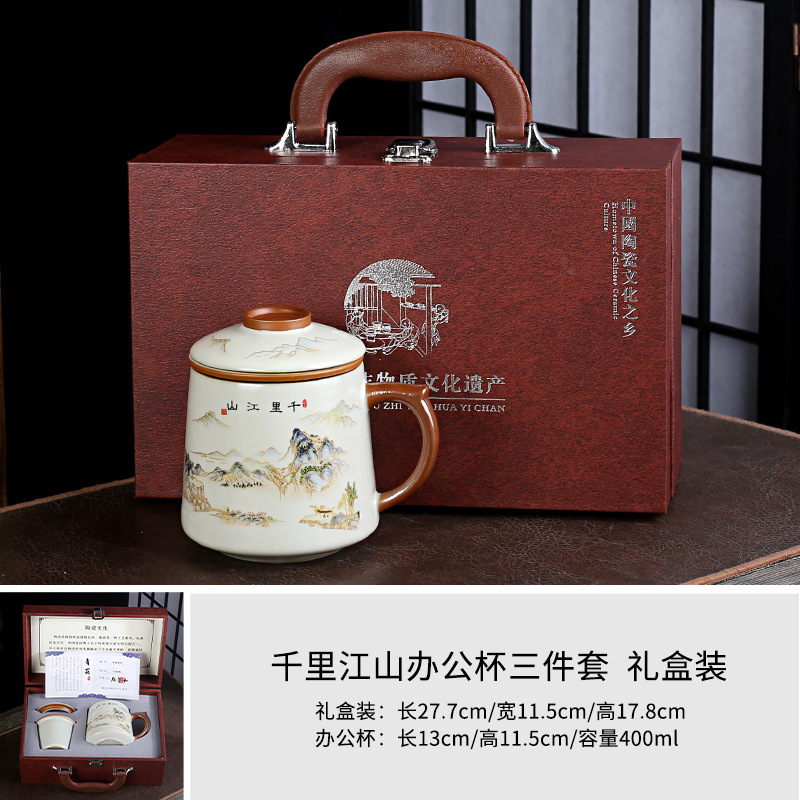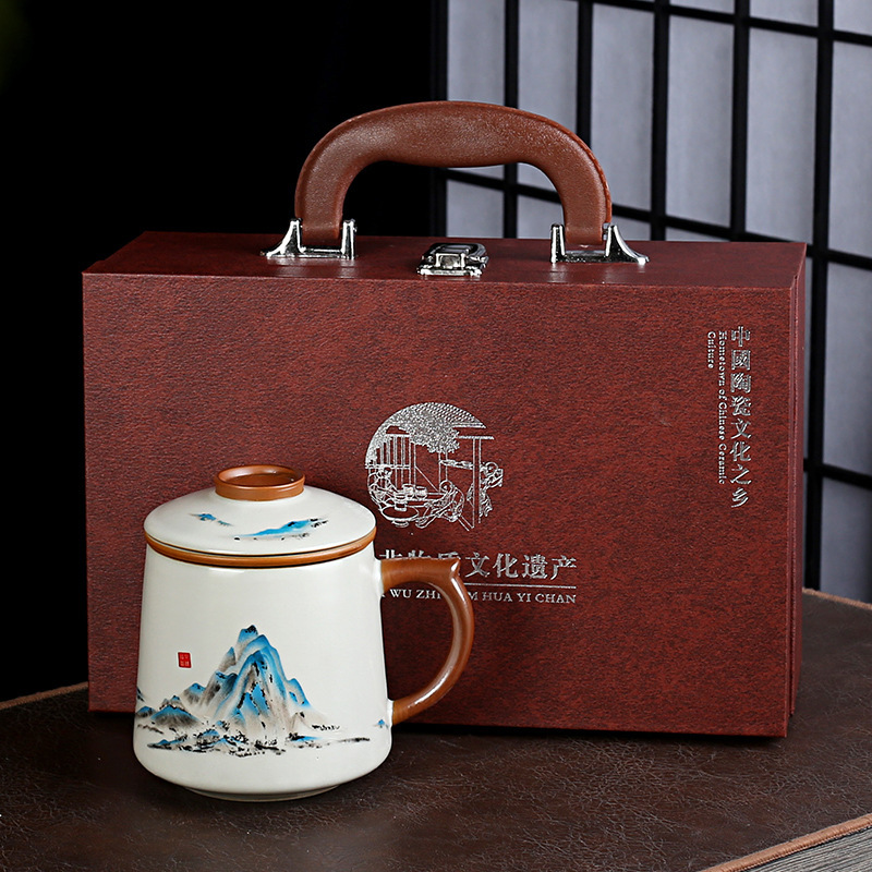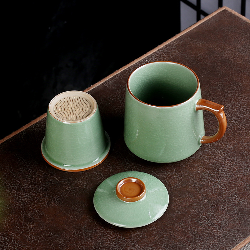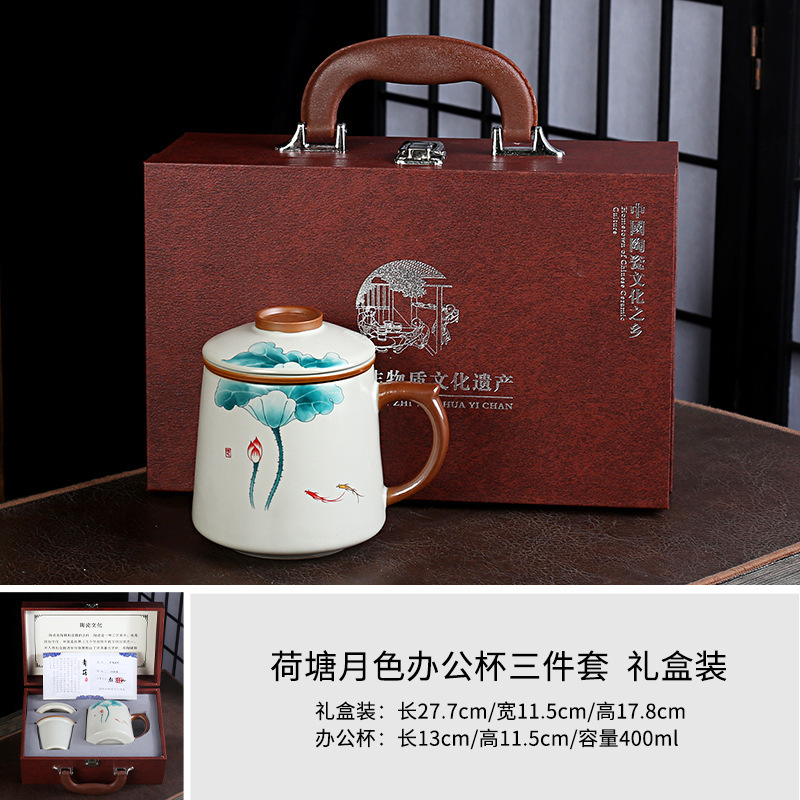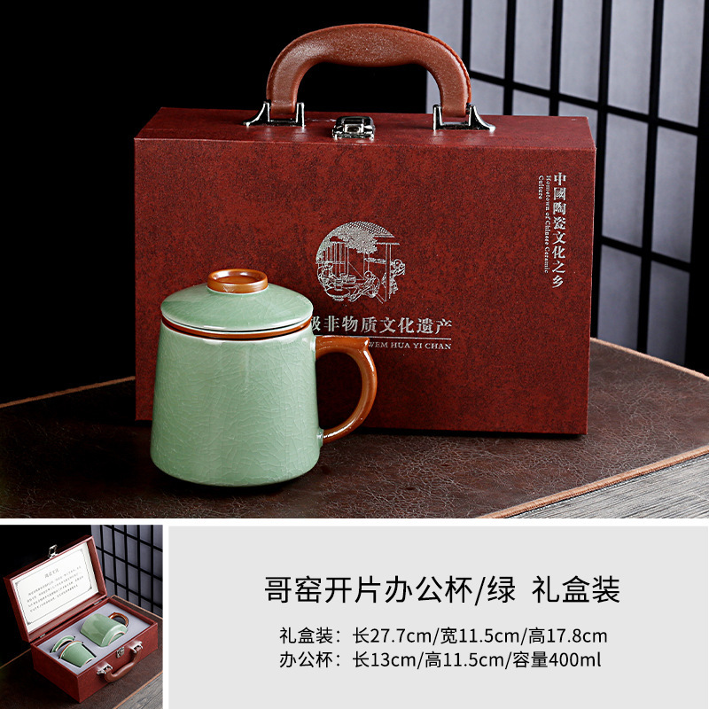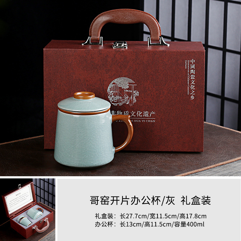 汝窑泡茶杯中式陶瓷带盖茶水分离马克杯大容量水杯商务伴手礼品杯