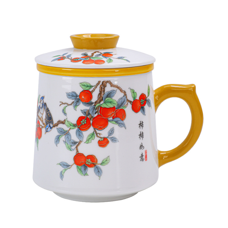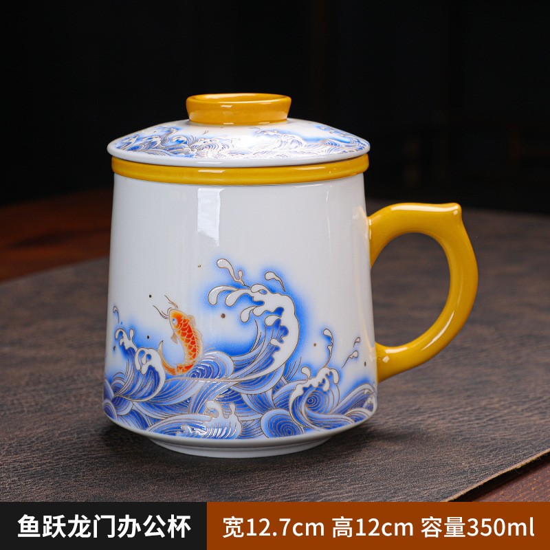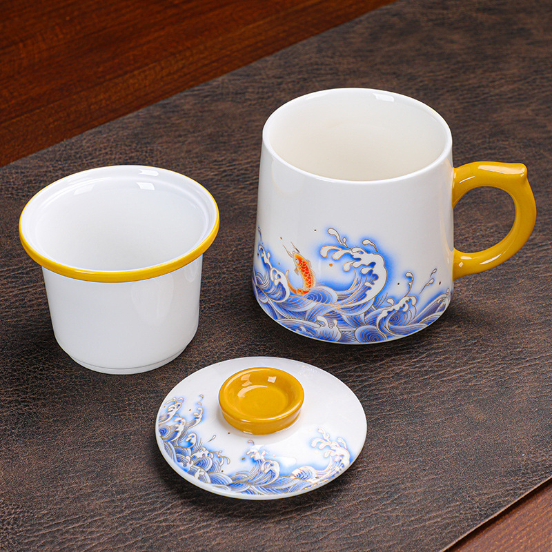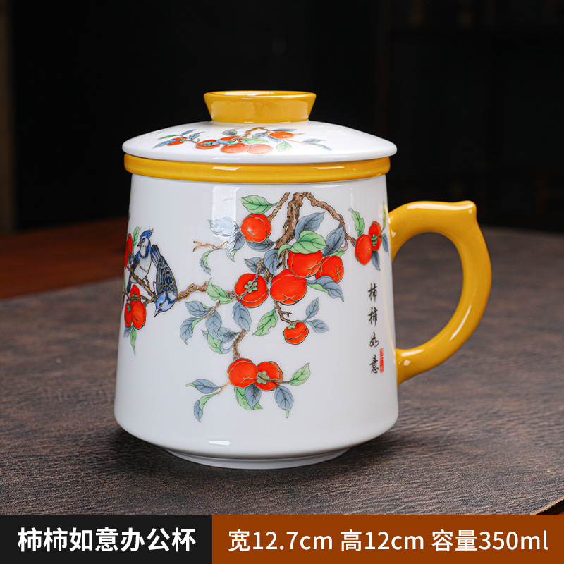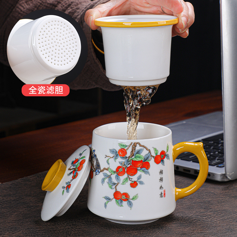 羊脂玉瓷茶杯个人专用带盖马克杯德化白瓷水杯家用茶水分离办公杯