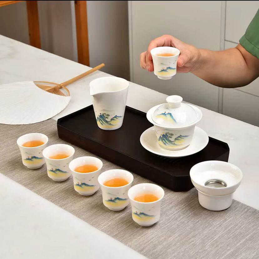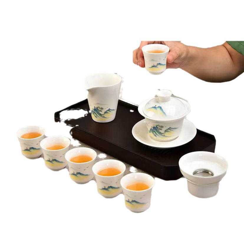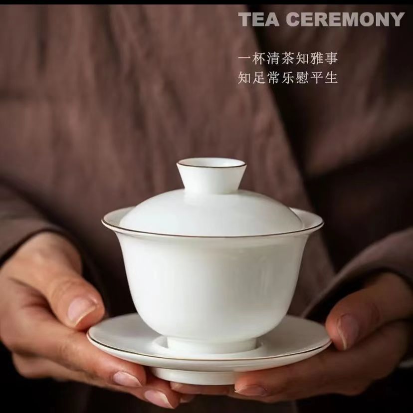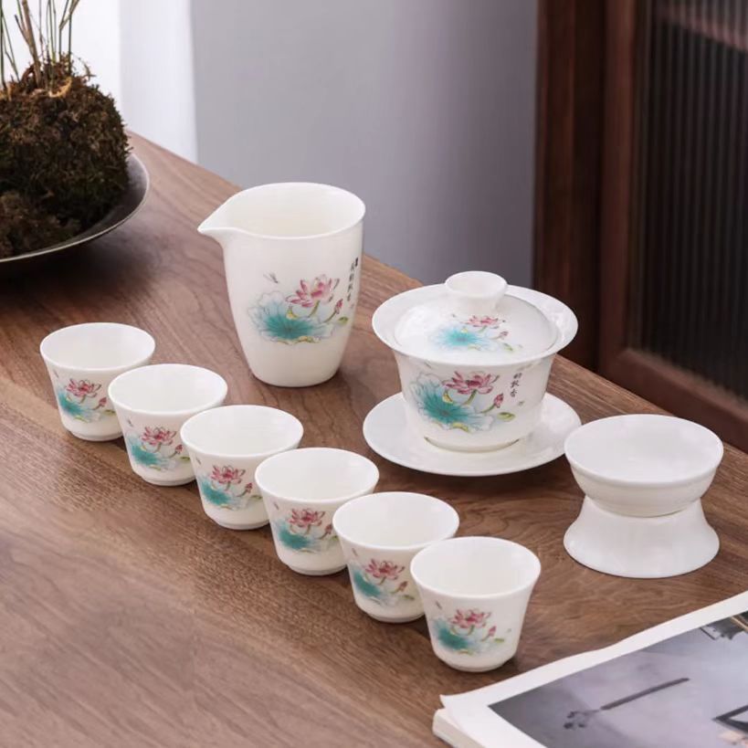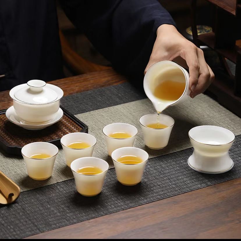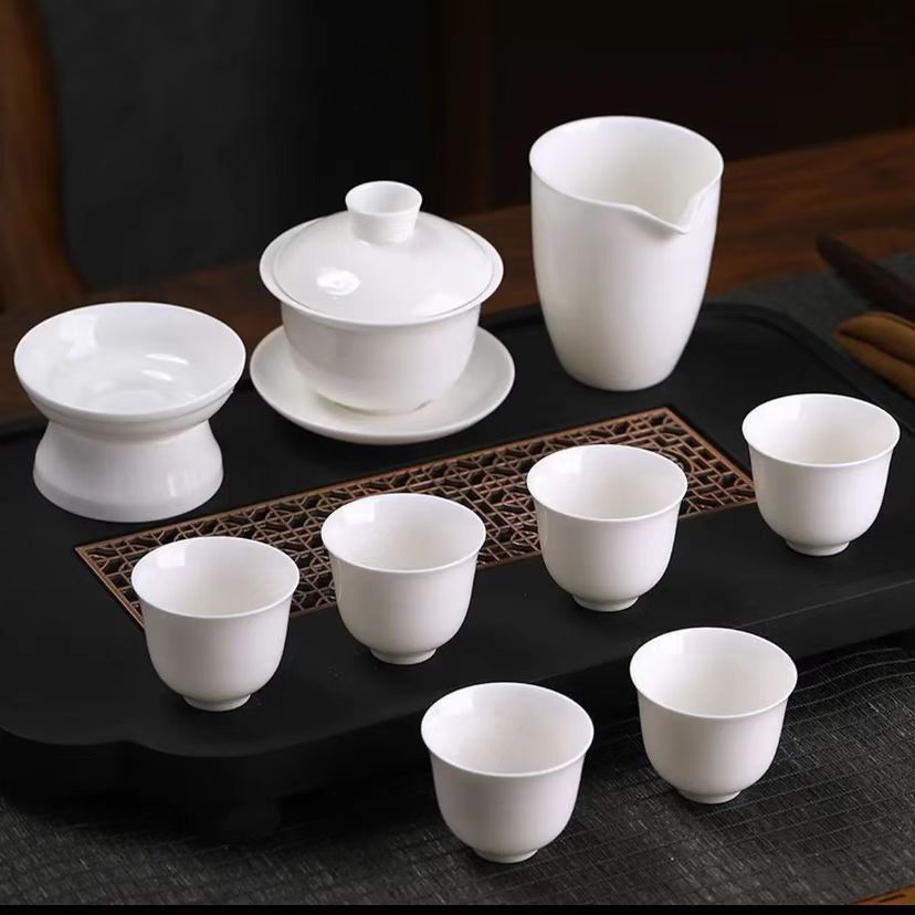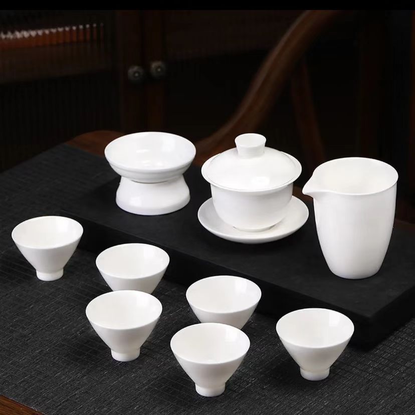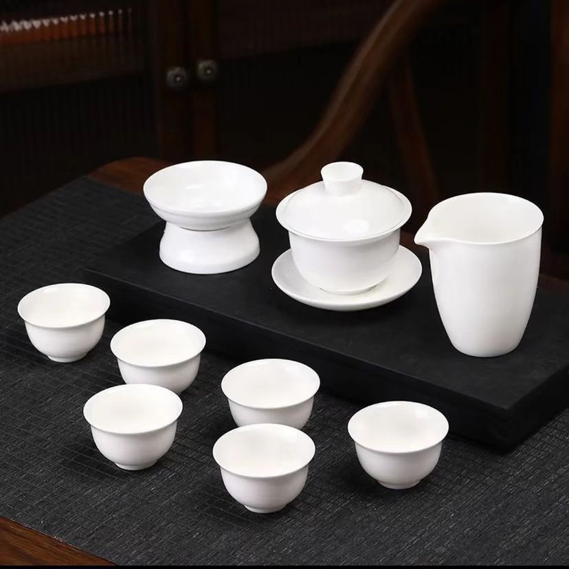 羊脂玉白瓷功夫茶具套装家用办公陶瓷泡茶壶盖碗茶杯整套商务礼品
