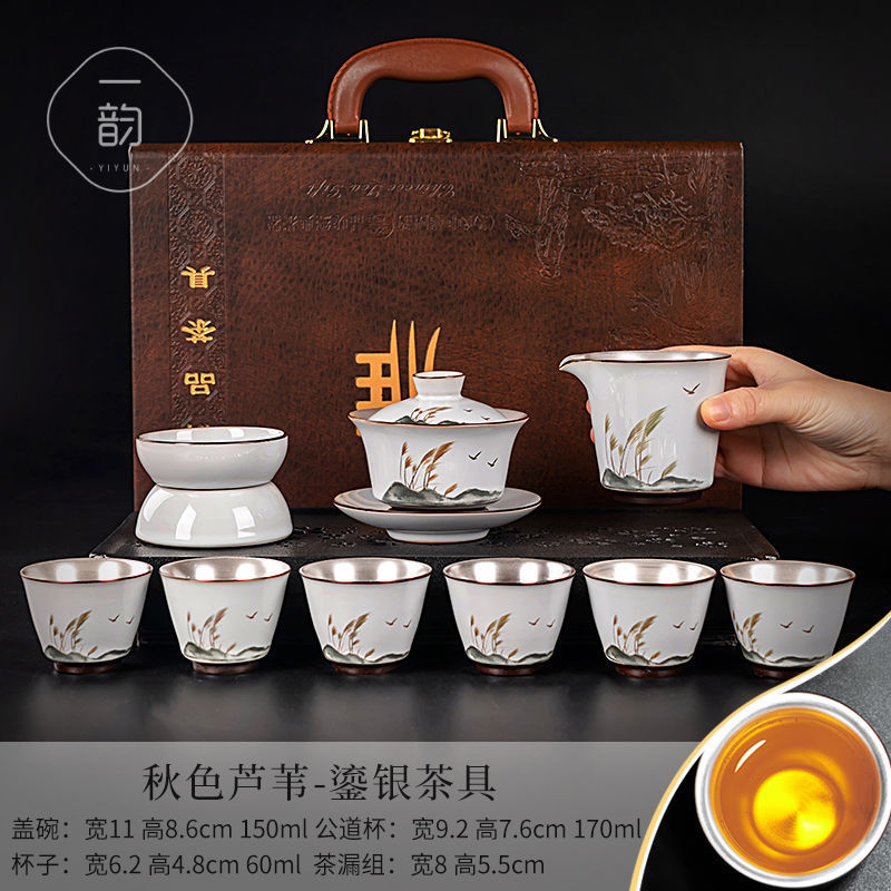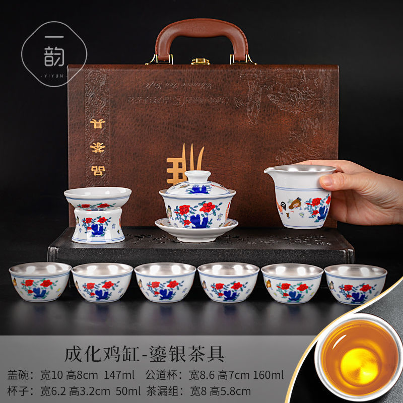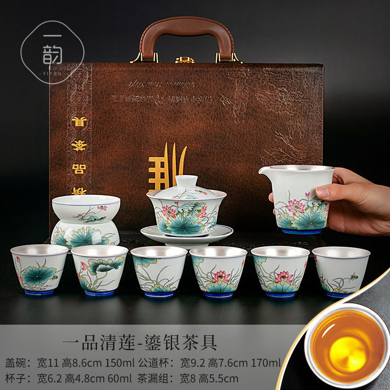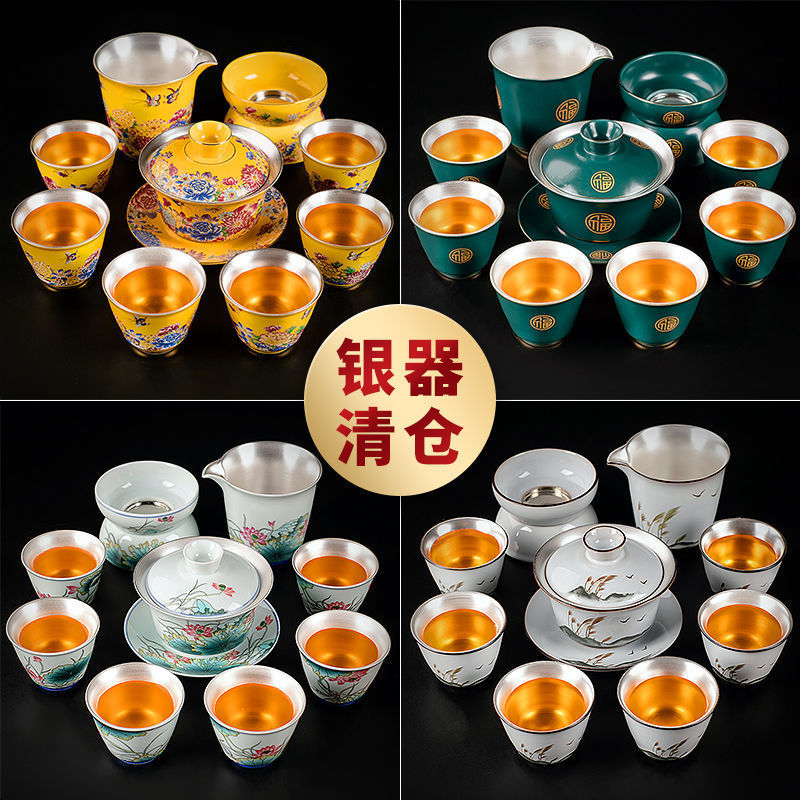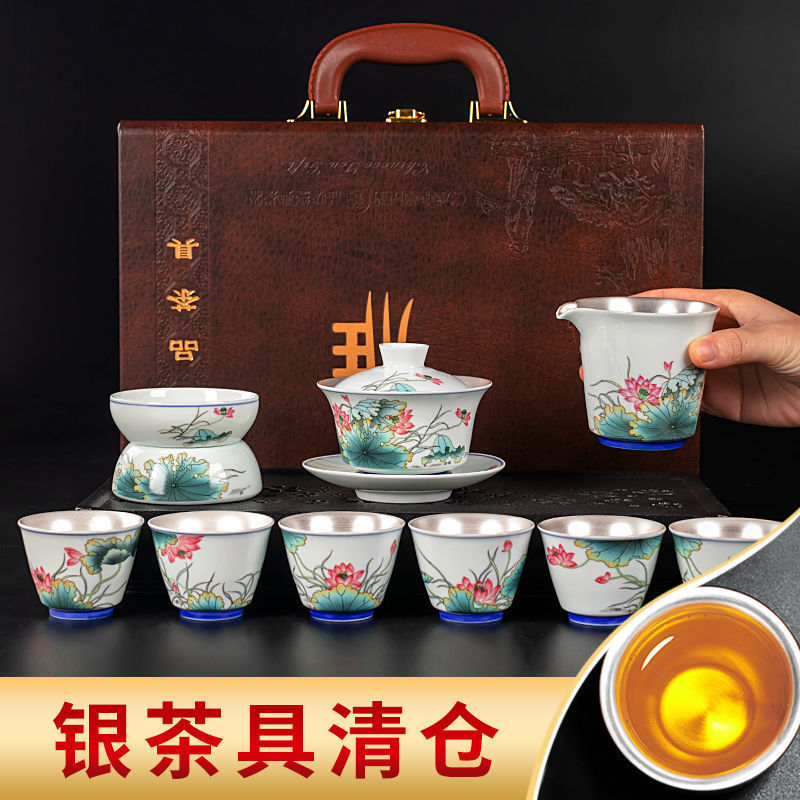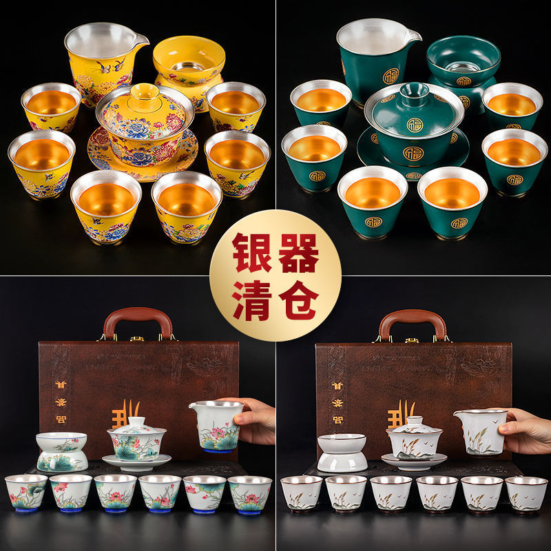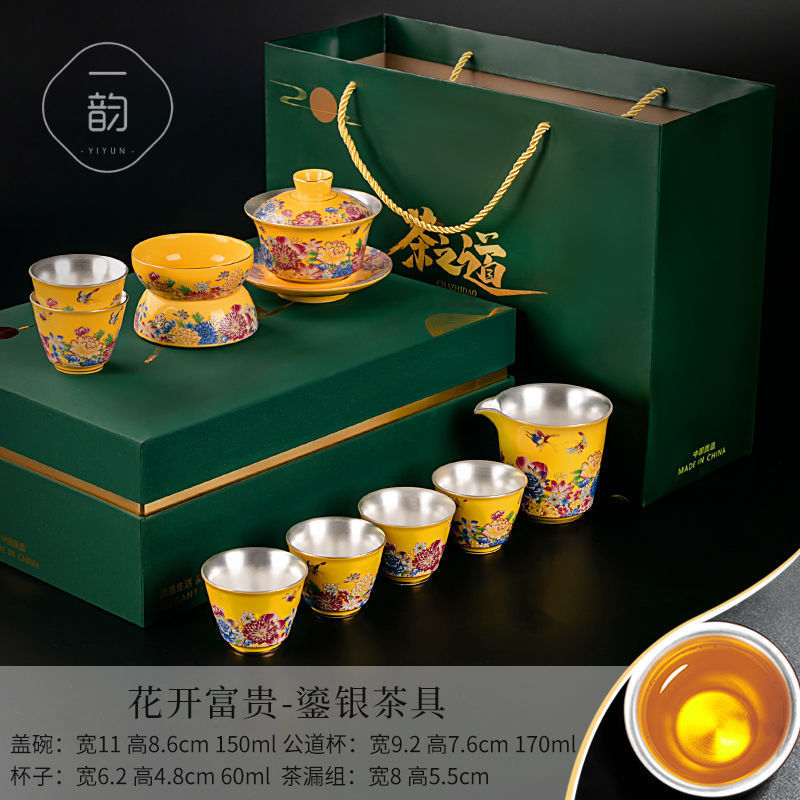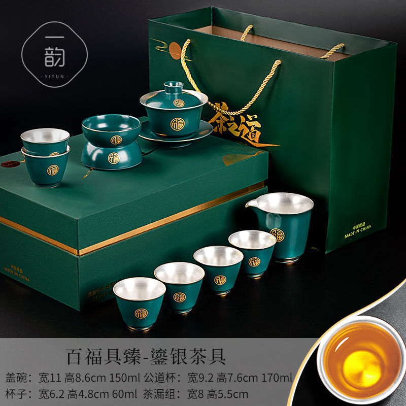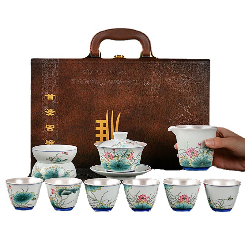 银茶具珐琅彩鎏银功夫茶具套装轻奢手工家用办公功夫茶杯商务礼品